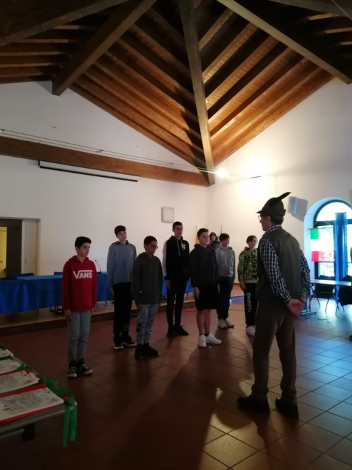 Dopo aver intrattenuto i ragazzi con una breve lezione da caserma e racconti del servizio di leva la mattinata è iniziata con la cerimonia dell’alzabandiera e il saluto con l’esecuzione dell’Inno di Mameli. La “lezione” ha poi affrontato la storia della bandiera italiana e degli Alpini.