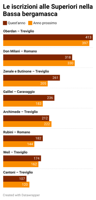 A segnare l’unica crescita veramente significativa è il Cantoni, istituto agrario di Treviglio che vede il 12% di iscrizioni in più, passando da 107 a 120 nuove matricole.