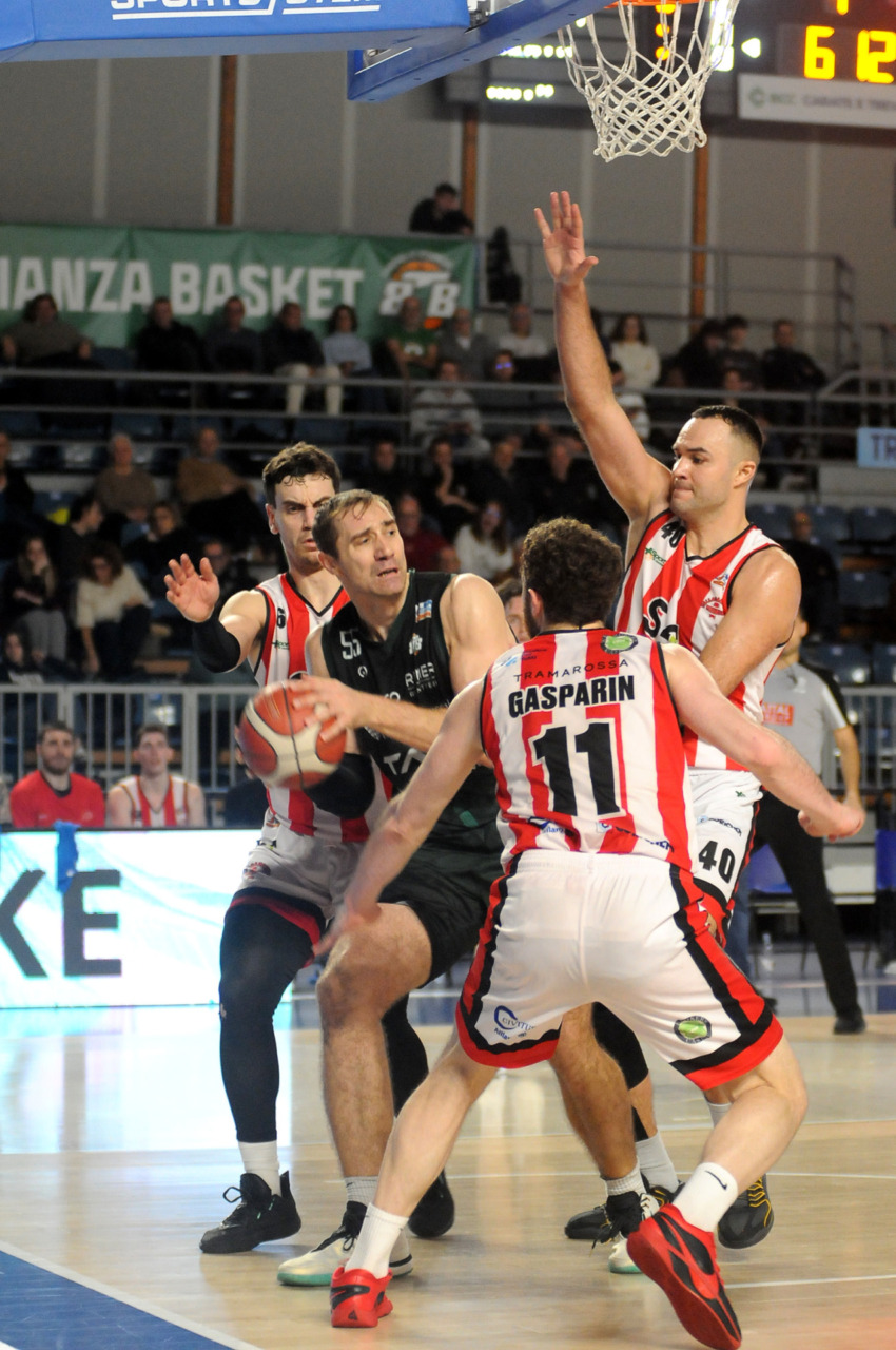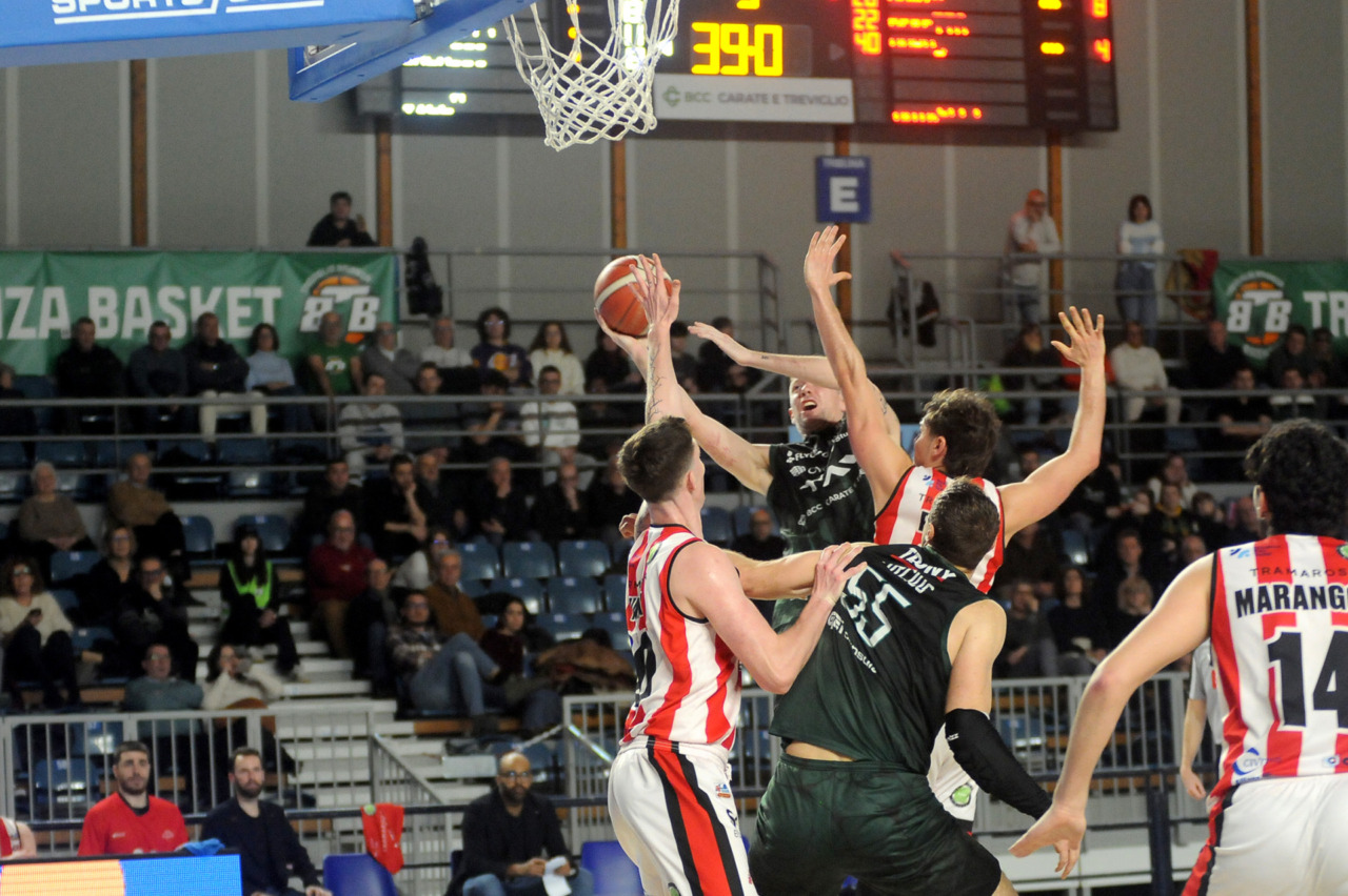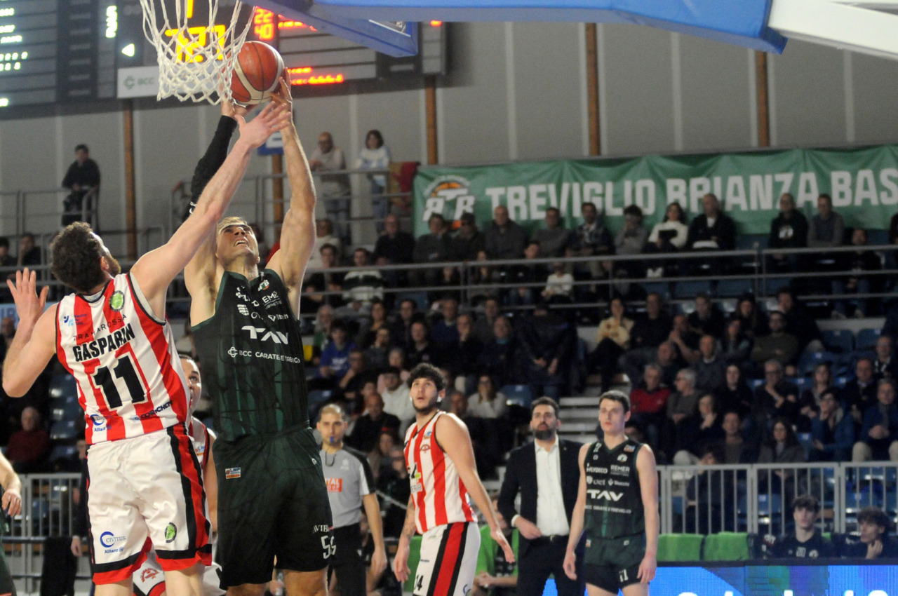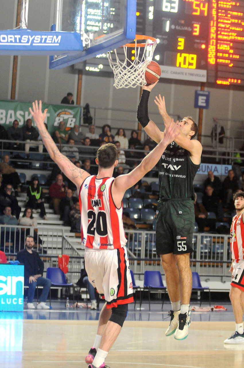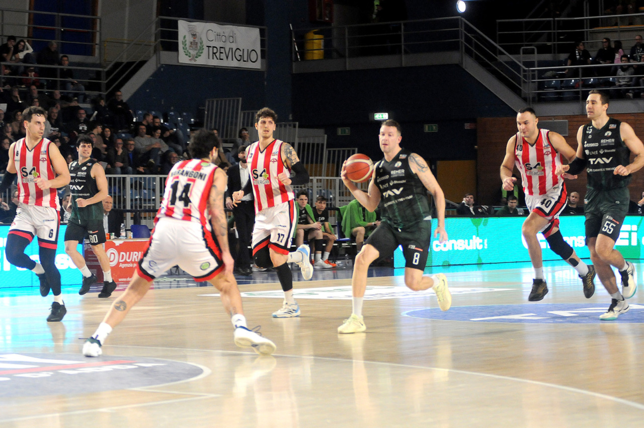 La sconfitta 104-71 subita otto giorni prima dalla Tav Treviglio Brianza sul campo della capolista Rucker San Vendemiano – lanciata con 15 vittorie consecutive – aveva fatto suonare qualche campanello d’allarme in casa trevigliese. Una squadra troppo brutta per essere vera, che non ha avuto la forza di reagire ad un inizio di gara infausto (12-0 di parziale) e ha imbarcato punti su punti nell’arco dei 40 minuti. Ieri, contro Vicenza, si è vista tutt’altra squadra, forse più simile alle reali potenzialità che questo gruppo ha e che per molti motivi – tra questi gli infortuni hanno avuto un peso determinante – non è ancora riuscito ad esprimere appieno. Contro un’avversaria che non ha mai mollato, cercando ad ogni sbavatura della Tav di tornare il più possibile a contatto nel punteggio, capitan Reati e compagni hanno disputato una gare attenta in difesa e solida in attacco. Dove si è rivisto un prolifico Aleksandar Marcius, tornato a timbrare una “doppia doppia” (15 punti e 11 rimbalzi, con 26 di valutazione), un Michele Rubbini “glaciale” dalla lunetta (13/14 e 20 punti realizzati), gli importanti contributi degli esterni Marco Restelli (17) e Matteo Galassi (13) e un Celis Taflaj (7 punti e 5 rimbalzi) ordinato. Rivedibili le prestazioni di Pietro Agostini (4) e Richard Morina (4), ma siamo sicuri che se la squadra proseguirà nella sua crescita come gruppo – recuperando anche gli infortunati Tommaso Rossi e il lungodegente Giacomo Zanetti – anche loro saliranno di livello.