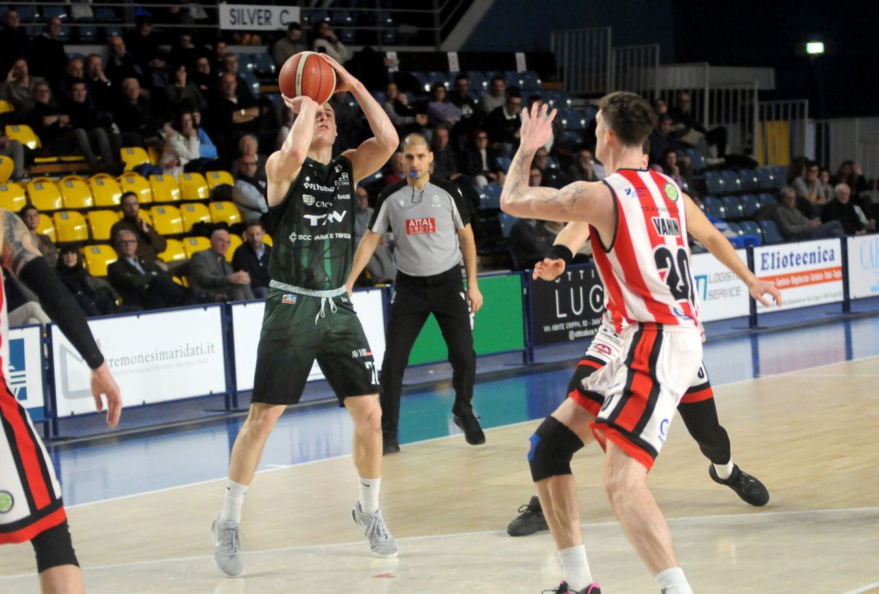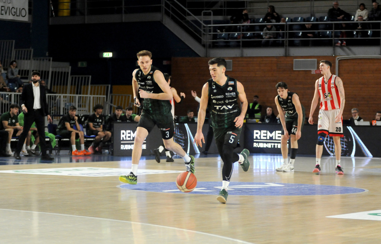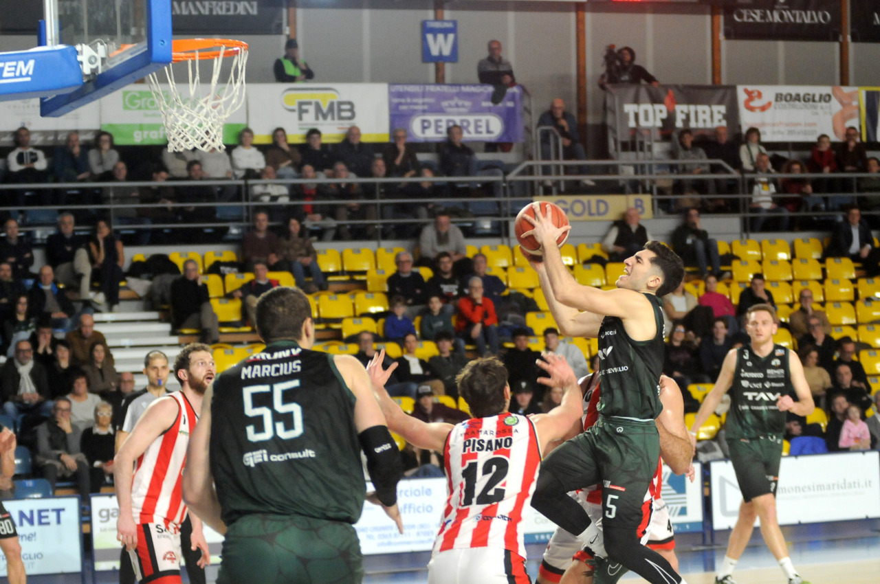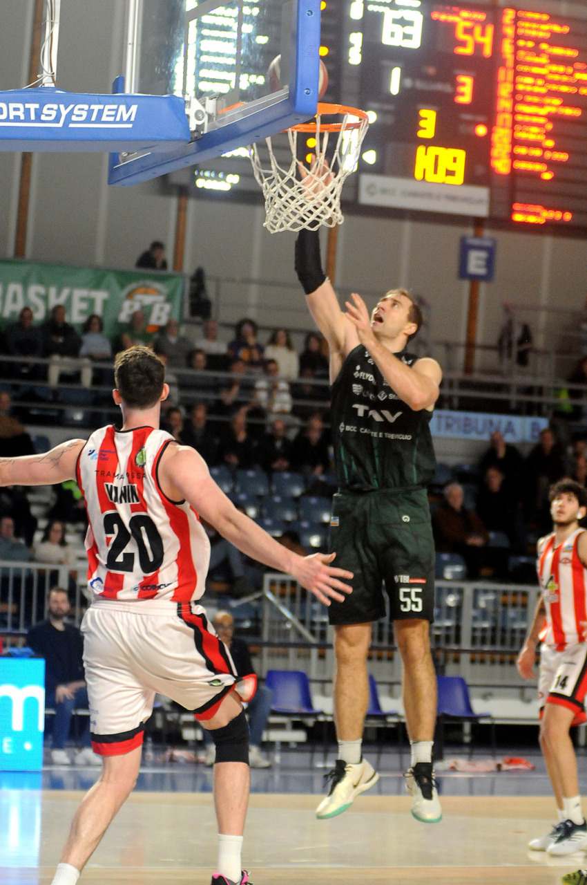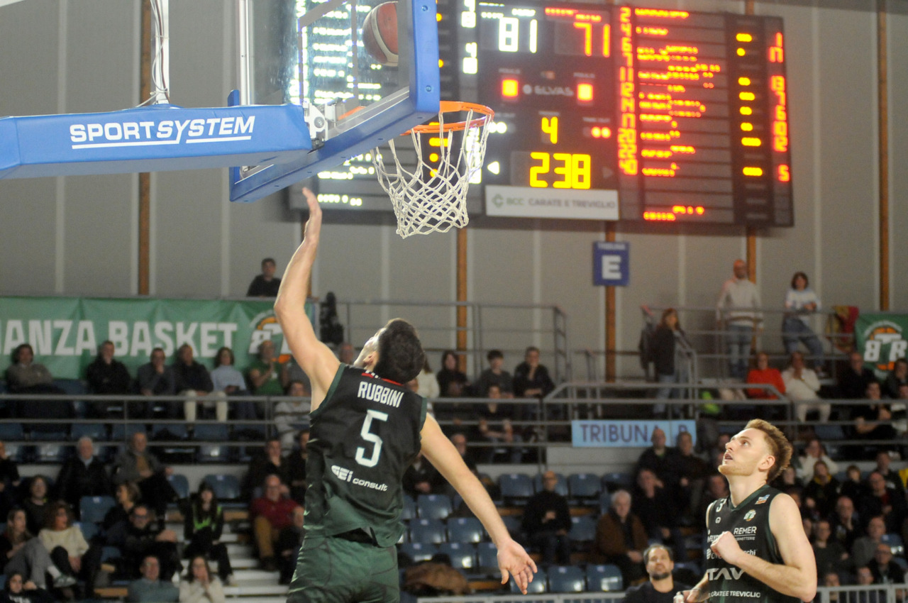 La sconfitta 104-71 subita otto giorni prima dalla Tav Treviglio Brianza sul campo della capolista Rucker San Vendemiano – lanciata con 15 vittorie consecutive – aveva fatto suonare qualche campanello d’allarme in casa trevigliese. Una squadra troppo brutta per essere vera, che non ha avuto la forza di reagire ad un inizio di gara infausto (12-0 di parziale) e ha imbarcato punti su punti nell’arco dei 40 minuti. Ieri, contro Vicenza, si è vista tutt’altra squadra, forse più simile alle reali potenzialità che questo gruppo ha e che per molti motivi – tra questi gli infortuni hanno avuto un peso determinante – non è ancora riuscito ad esprimere appieno. Contro un’avversaria che non ha mai mollato, cercando ad ogni sbavatura della Tav di tornare il più possibile a contatto nel punteggio, capitan Reati e compagni hanno disputato una gare attenta in difesa e solida in attacco. Dove si è rivisto un prolifico Aleksandar Marcius, tornato a timbrare una “doppia doppia” (15 punti e 11 rimbalzi, con 26 di valutazione), un Michele Rubbini “glaciale” dalla lunetta (13/14 e 20 punti realizzati), gli importanti contributi degli esterni Marco Restelli (17) e Matteo Galassi (13) e un Celis Taflaj (7 punti e 5 rimbalzi) ordinato. Rivedibili le prestazioni di Pietro Agostini (4) e Richard Morina (4), ma siamo sicuri che se la squadra proseguirà nella sua crescita come gruppo – recuperando anche gli infortunati Tommaso Rossi e il lungodegente Giacomo Zanetti – anche loro saliranno di livello.