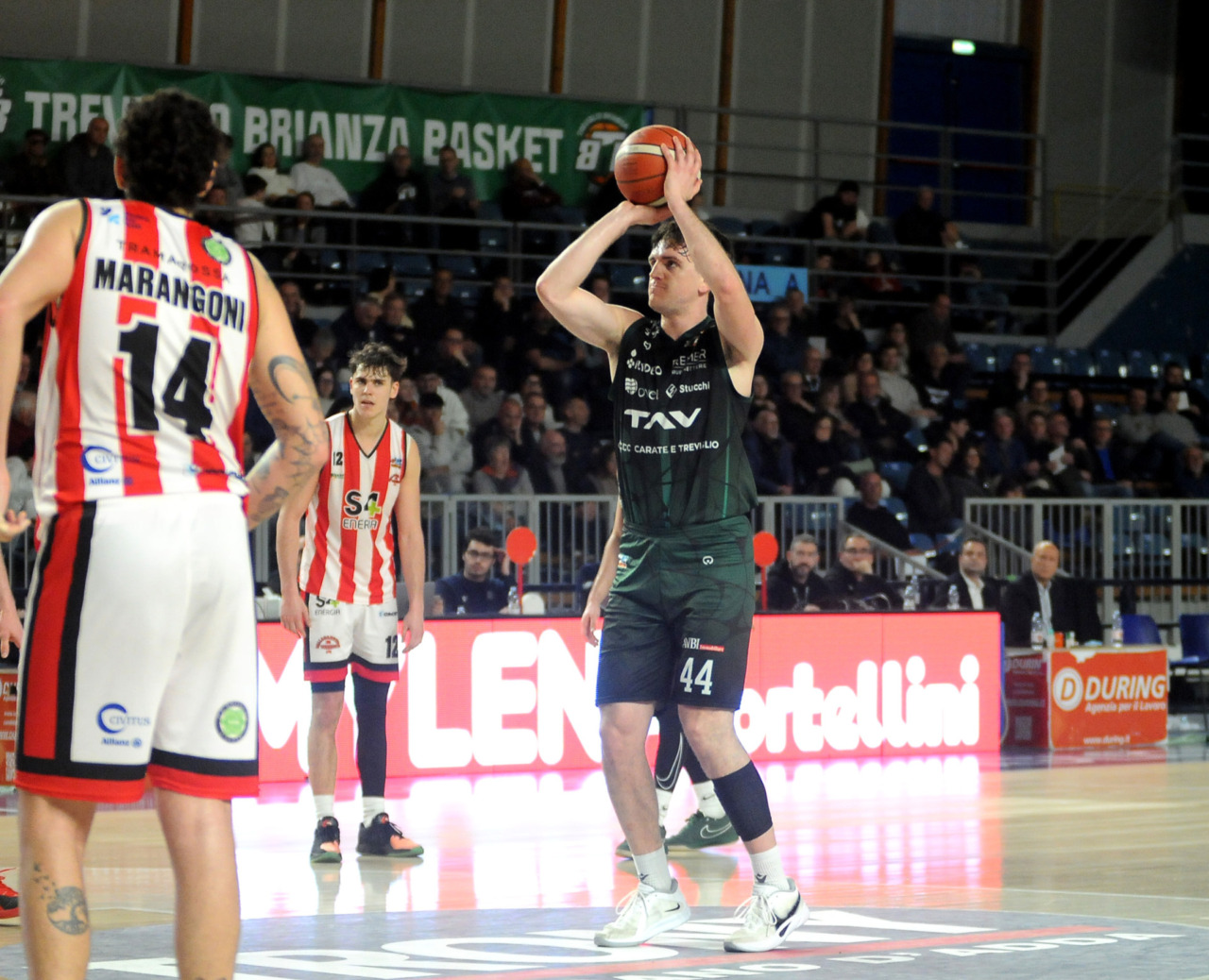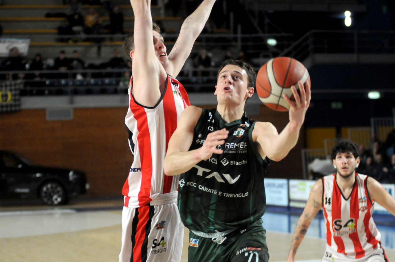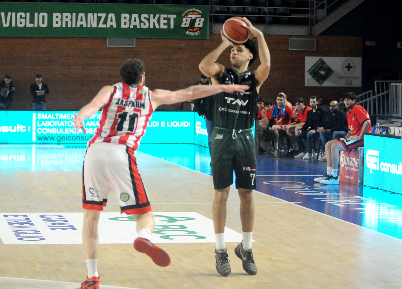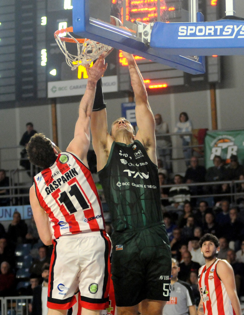 La sconfitta 104-71 subita otto giorni prima dalla Tav Treviglio Brianza sul campo della capolista Rucker San Vendemiano – lanciata con 15 vittorie consecutive – aveva fatto suonare qualche campanello d’allarme in casa trevigliese. Una squadra troppo brutta per essere vera, che non ha avuto la forza di reagire ad un inizio di gara infausto (12-0 di parziale) e ha imbarcato punti su punti nell’arco dei 40 minuti. Ieri, contro Vicenza, si è vista tutt’altra squadra, forse più simile alle reali potenzialità che questo gruppo ha e che per molti motivi – tra questi gli infortuni hanno avuto un peso determinante – non è ancora riuscito ad esprimere appieno. Contro un’avversaria che non ha mai mollato, cercando ad ogni sbavatura della Tav di tornare il più possibile a contatto nel punteggio, capitan Reati e compagni hanno disputato una gare attenta in difesa e solida in attacco. Dove si è rivisto un prolifico Aleksandar Marcius, tornato a timbrare una “doppia doppia” (15 punti e 11 rimbalzi, con 26 di valutazione), un Michele Rubbini “glaciale” dalla lunetta (13/14 e 20 punti realizzati), gli importanti contributi degli esterni Marco Restelli (17) e Matteo Galassi (13) e un Celis Taflaj (7 punti e 5 rimbalzi) ordinato. Rivedibili le prestazioni di Pietro Agostini (4) e Richard Morina (4), ma siamo sicuri che se la squadra proseguirà nella sua crescita come gruppo – recuperando anche gli infortunati Tommaso Rossi e il lungodegente Giacomo Zanetti – anche loro saliranno di livello.