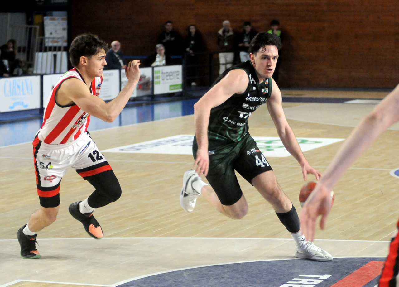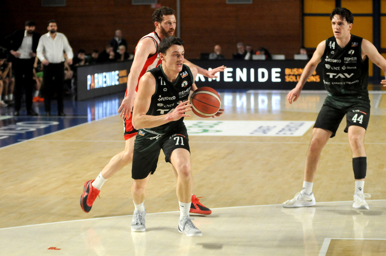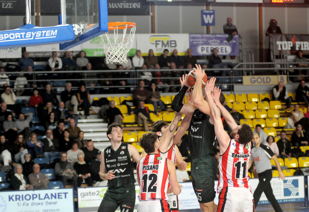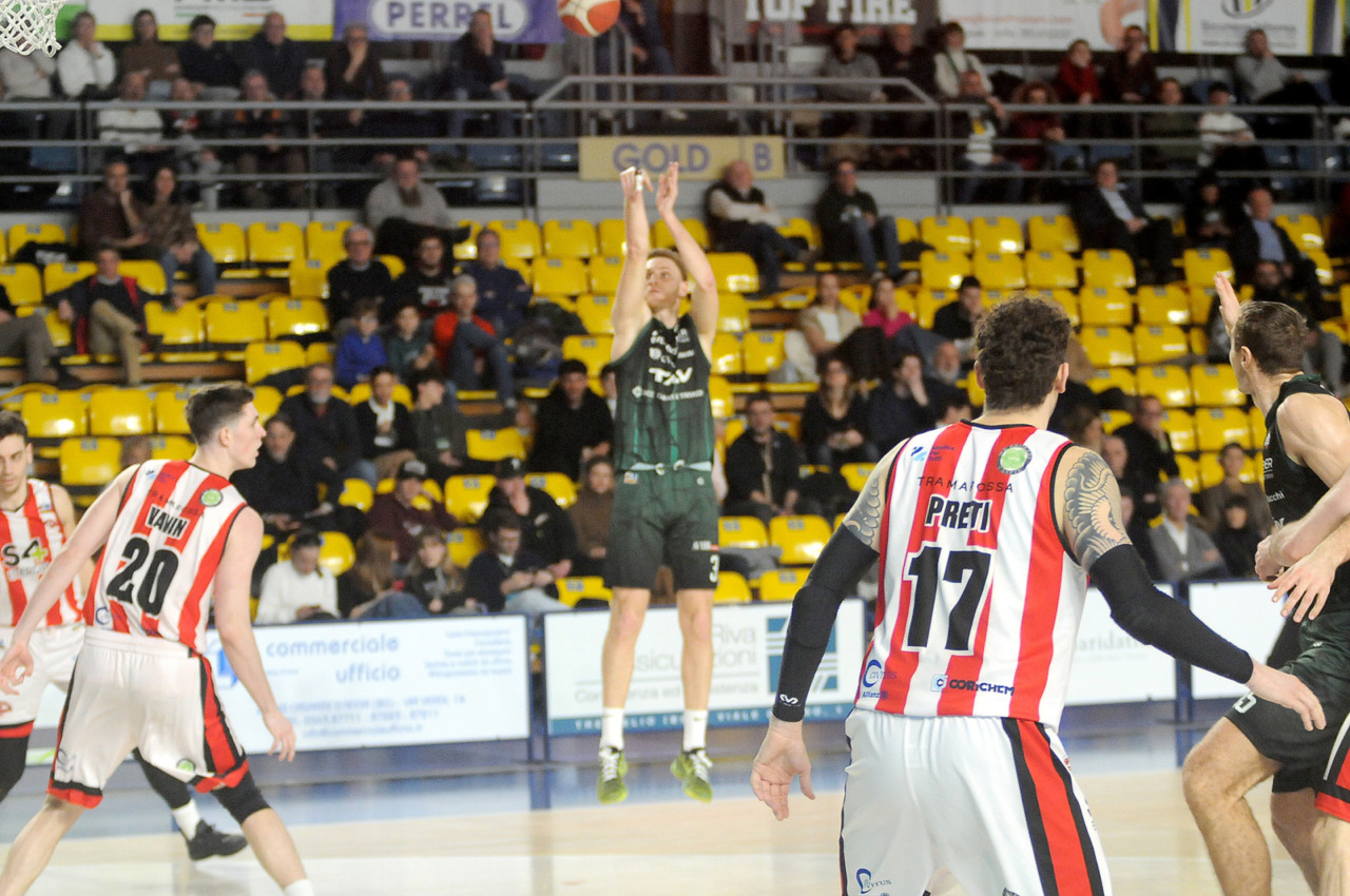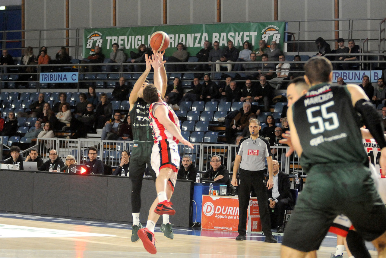 La sconfitta 104-71 subita otto giorni prima dalla Tav Treviglio Brianza sul campo della capolista Rucker San Vendemiano – lanciata con 15 vittorie consecutive – aveva fatto suonare qualche campanello d’allarme in casa trevigliese. Una squadra troppo brutta per essere vera, che non ha avuto la forza di reagire ad un inizio di gara infausto (12-0 di parziale) e ha imbarcato punti su punti nell’arco dei 40 minuti. Ieri, contro Vicenza, si è vista tutt’altra squadra, forse più simile alle reali potenzialità che questo gruppo ha e che per molti motivi – tra questi gli infortuni hanno avuto un peso determinante – non è ancora riuscito ad esprimere appieno. Contro un’avversaria che non ha mai mollato, cercando ad ogni sbavatura della Tav di tornare il più possibile a contatto nel punteggio, capitan Reati e compagni hanno disputato una gare attenta in difesa e solida in attacco. Dove si è rivisto un prolifico Aleksandar Marcius, tornato a timbrare una “doppia doppia” (15 punti e 11 rimbalzi, con 26 di valutazione), un Michele Rubbini “glaciale” dalla lunetta (13/14 e 20 punti realizzati), gli importanti contributi degli esterni Marco Restelli (17) e Matteo Galassi (13) e un Celis Taflaj (7 punti e 5 rimbalzi) ordinato. Rivedibili le prestazioni di Pietro Agostini (4) e Richard Morina (4), ma siamo sicuri che se la squadra proseguirà nella sua crescita come gruppo – recuperando anche gli infortunati Tommaso Rossi e il lungodegente Giacomo Zanetti – anche loro saliranno di livello.