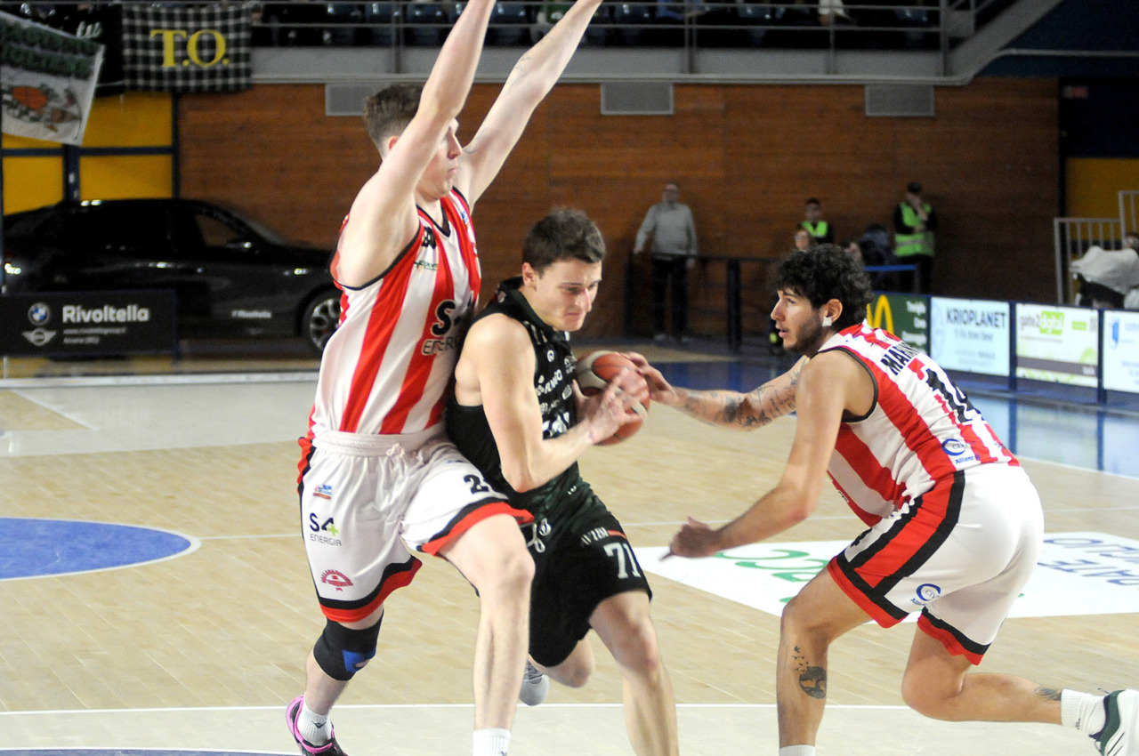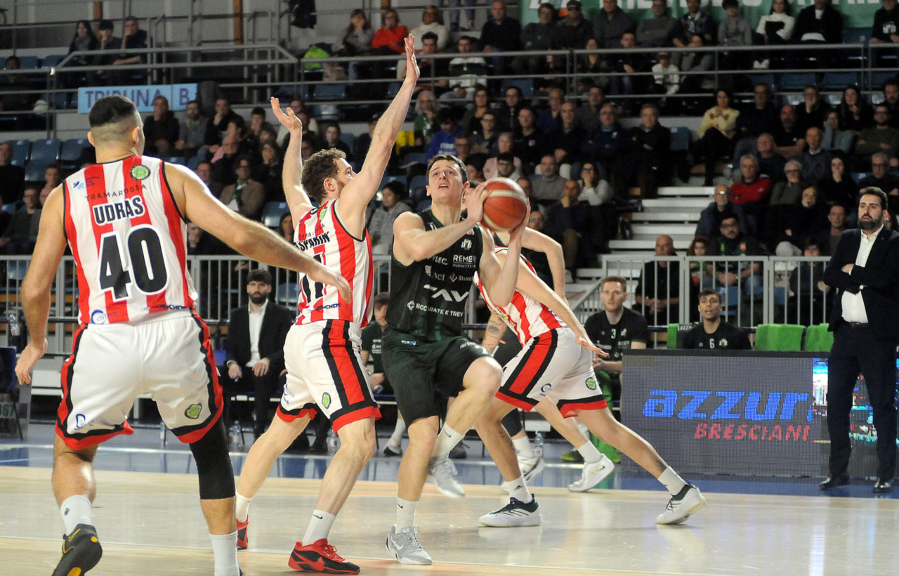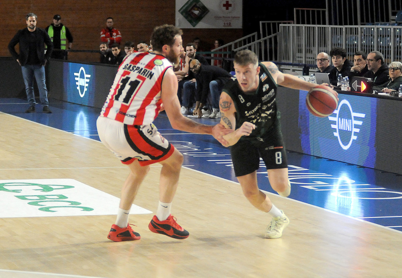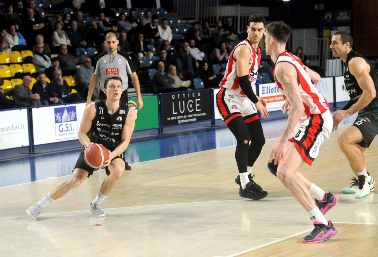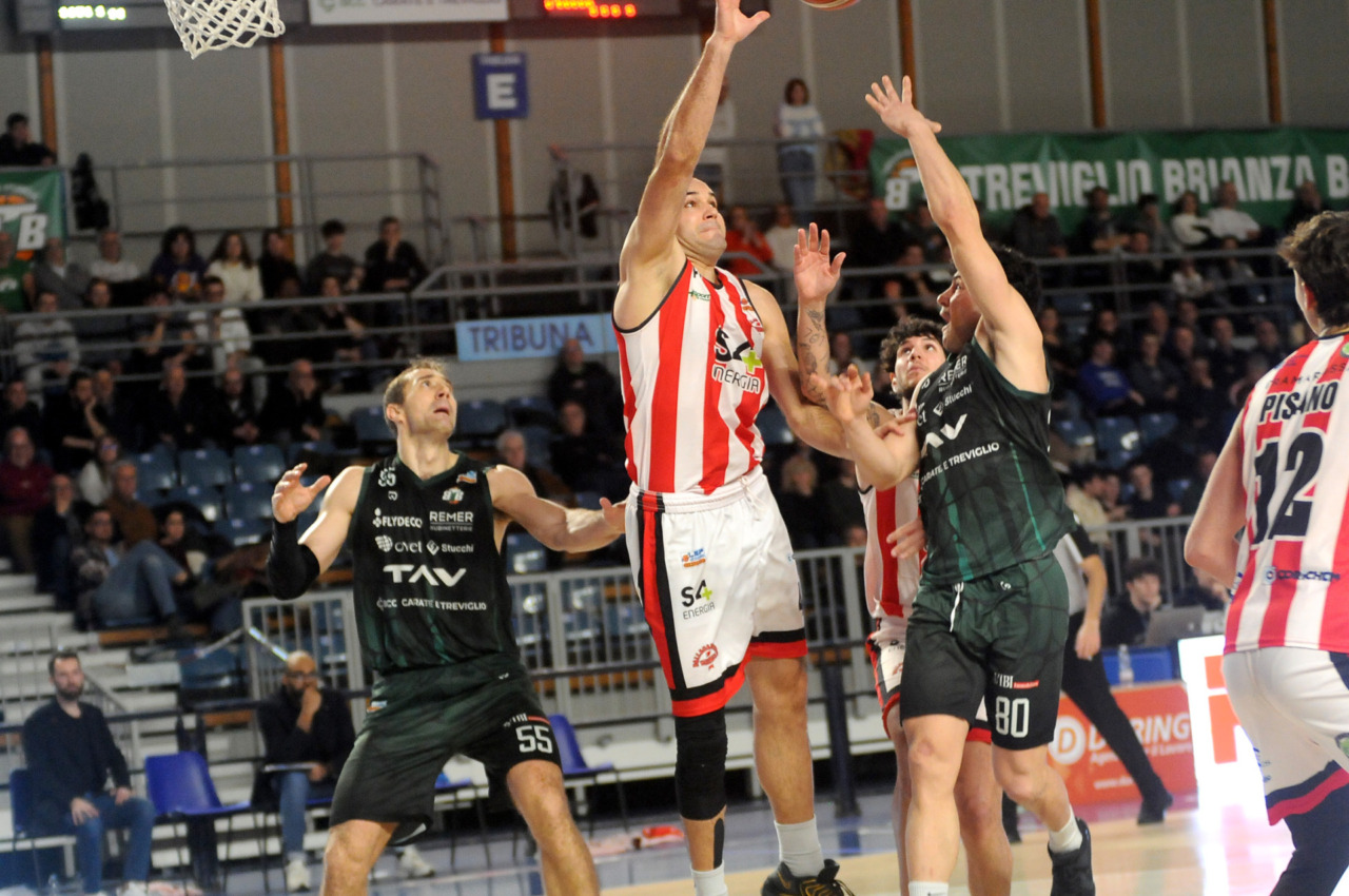 La sconfitta 104-71 subita otto giorni prima dalla Tav Treviglio Brianza sul campo della capolista Rucker San Vendemiano – lanciata con 15 vittorie consecutive – aveva fatto suonare qualche campanello d’allarme in casa trevigliese. Una squadra troppo brutta per essere vera, che non ha avuto la forza di reagire ad un inizio di gara infausto (12-0 di parziale) e ha imbarcato punti su punti nell’arco dei 40 minuti. Ieri, contro Vicenza, si è vista tutt’altra squadra, forse più simile alle reali potenzialità che questo gruppo ha e che per molti motivi – tra questi gli infortuni hanno avuto un peso determinante – non è ancora riuscito ad esprimere appieno. Contro un’avversaria che non ha mai mollato, cercando ad ogni sbavatura della Tav di tornare il più possibile a contatto nel punteggio, capitan Reati e compagni hanno disputato una gare attenta in difesa e solida in attacco. Dove si è rivisto un prolifico Aleksandar Marcius, tornato a timbrare una “doppia doppia” (15 punti e 11 rimbalzi, con 26 di valutazione), un Michele Rubbini “glaciale” dalla lunetta (13/14 e 20 punti realizzati), gli importanti contributi degli esterni Marco Restelli (17) e Matteo Galassi (13) e un Celis Taflaj (7 punti e 5 rimbalzi) ordinato. Rivedibili le prestazioni di Pietro Agostini (4) e Richard Morina (4), ma siamo sicuri che se la squadra proseguirà nella sua crescita come gruppo – recuperando anche gli infortunati Tommaso Rossi e il lungodegente Giacomo Zanetti – anche loro saliranno di livello.