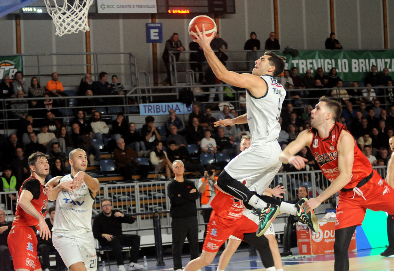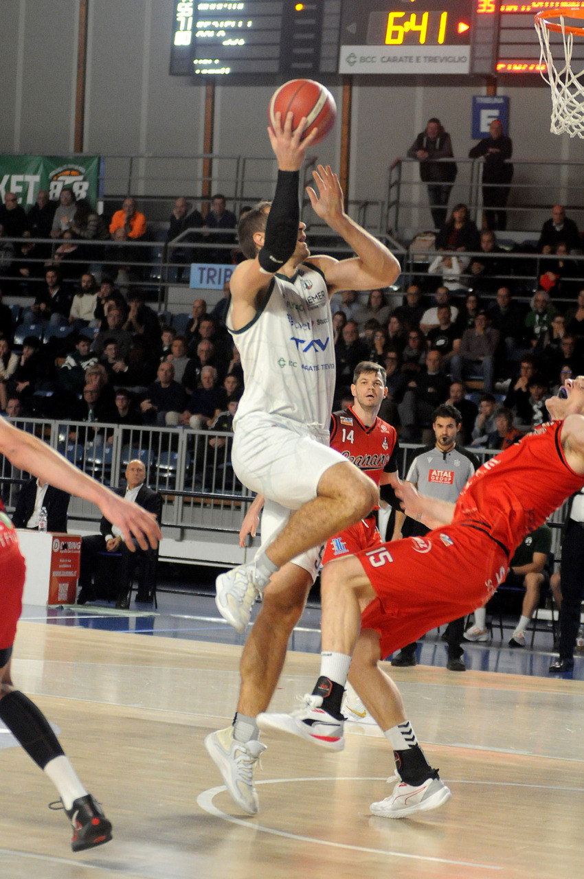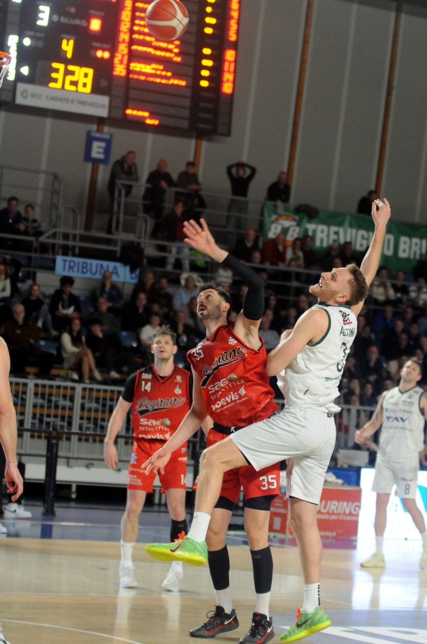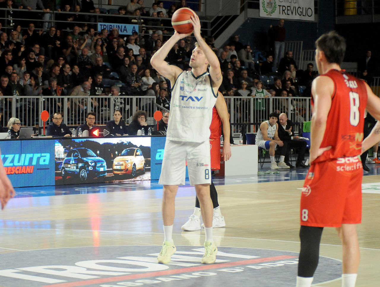 Al termine dei 40 minuti a far festa sono stati i tifosi della Tav Treviglio Brianza che con una prova di sostanza e di squadra ha regolato 85-79 al PalaFacchetti BCC Carate e Treviglio Arena la Sae Scientifica-Soevis Legnano che è incappata così nel quarto ko consecutivo. Quando manca un turno al termine del girone d’andata, al comando nel girone A c’è la Elachem Vigevano con 26 punti e “un piede” già alle final-four di Coppa Italia. L’altro posto se lo contenderanno una tra Vicenza, Gema Montecatini e Orzinuovi che sono a 24 punti. I biancoverdi di coach Davide Villa, invece, rincorrono le posizioni di testa, a quota 22, dove hanno agganciato Legnano insieme a San Vendemiano e Assigeco Piacenza. Al termine della gallery fotografica la situazione nel girone A di Serie B Nazionale.