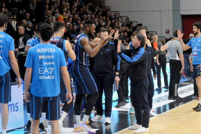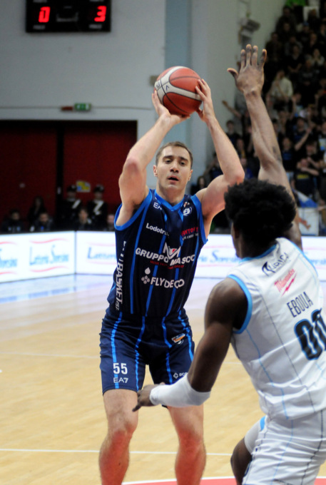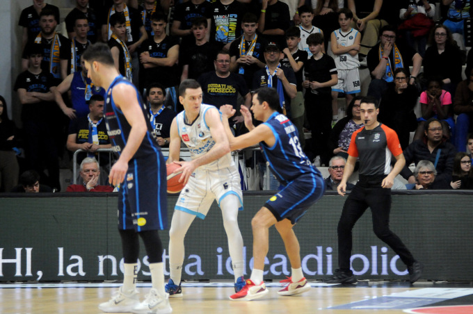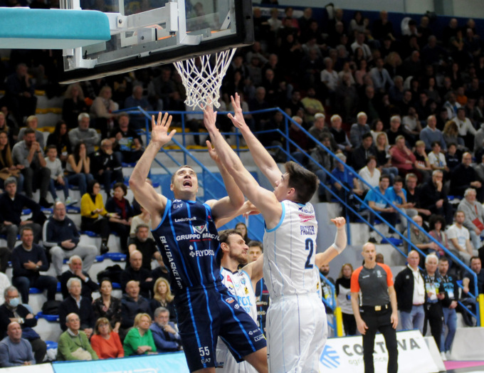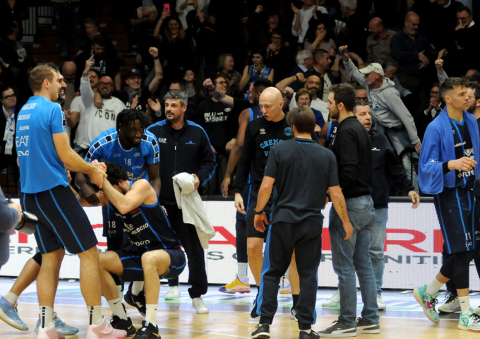 Nel nostro consueto recap in immagini il racconto della partita maratona vinta ieri, domenica 19 marzo, dal Gruppo Mascio Treviglio 89-87 al PalaRadi contro la Vanoli Cremona dopo due tempi supplementari. I biancoblu di coach Alessandro Finelli vanno 2-0 sulla formazione di coach Demis Cavina, si assicurano uno dei primi tre posti nel girone Verde e inizieranno la seconda fase con 6 punti all’attivo.