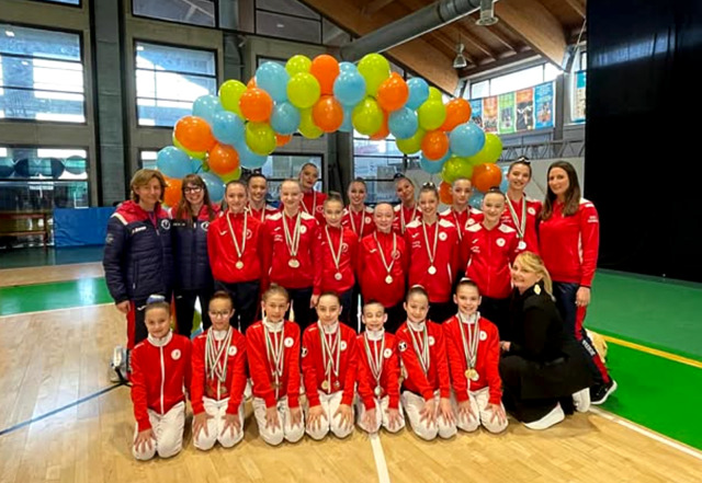 Nel Silver Eccellenza dieci medaglie a partire dall’argento individuale Senior di Jessica Gatti, che ha conquistato l’oro nel trio insieme a Eleonora Alfarano e Ilaria Gervasoni, bronzo per il trio composto da Sara Fratus, Ania Ferranti e Gaia Fittipaldi. Bronzo anche con il gruppo Alfarano, Gatti, Fratus, Ferranti e Fittipaldi. Doppio oro Junior A con il trio Matilde Agazzi, Angelica Vecchi e Sara Veseli e con il gruppo completato da Maddalena Bonassi e Noemi Qose. Tra le Allieve oro di gruppo con Ludovica Berni, Angelica Cocco, Valentina Colombo, Delia Domi e Giulia Scarpellini; argenti per la coppia Berni e Colombo e per il trio Cocco, Domi, Scarpellini; bronzo individuale di Domi.