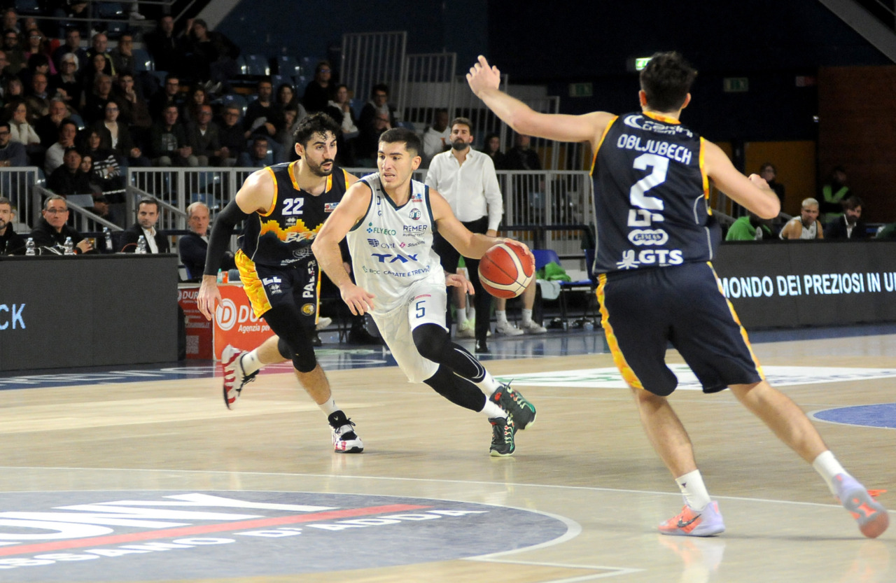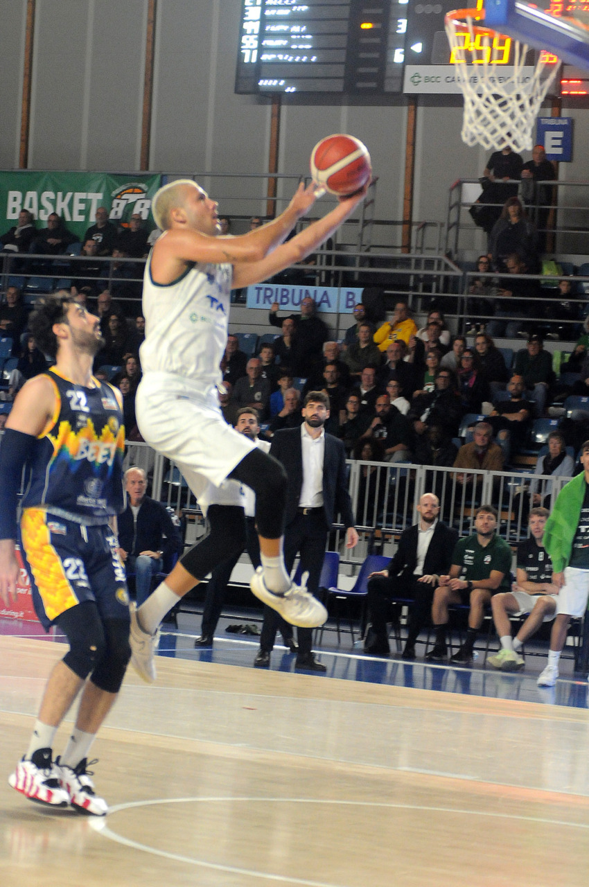 Pronto riscatto della Tac Treviglio Brianza che davanti al suo pubblico al PalaFacchetti BCC Carate e Treviglio Arena supera 89-63 Fiorenzuola Bees e centra la settima vittoria in campionato, conservando la vetta del girone A con Legnano e Gema Montecatini. I biancoverdi hanno allungato nel punteggio con un secondo tempo solido in difesa e prolifico in attacco, salvo qualche difficoltà nell’attaccare la zona ospite. Più gli aspetti positivi, quelli evidenziati da coach Davide Villa in sala stampa nel post partita, che quelli negativi su cui si era focalizzata l’attenzione nelle ultime uscite della squadra. Se Michele Rubbini (22 punti e 5 assist) si è confermato un leader offensivo per la Tav, buone cose sono arrivate dai lunghi Aleksandar Marcius (13 punti e 9 rimbalzi) e Celis Taflaj (11 punti); positive anche le prestazioni di Richard Morina (11 punti e 4 assist) e Marco Restelli (8 punti). Nel finale di partita esordio assoluto in prima squadra per Andrea Ronchi, 18enne ala/pivot, che ha messo a referto i suoi primi due punti con la canotta di Treviglio Brianza. Al termine della gallery fotografica la situazione in classifica nel girone A.