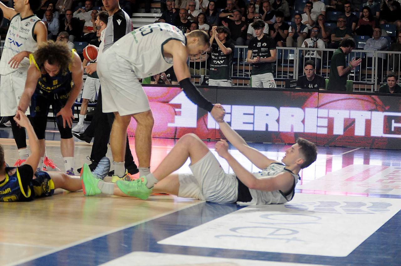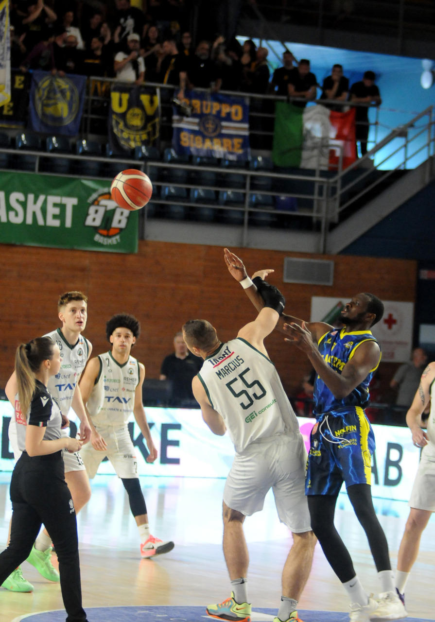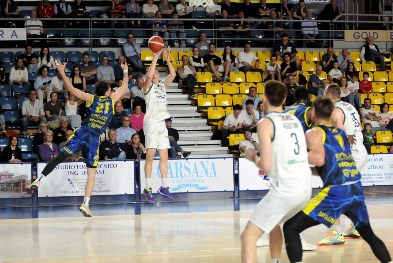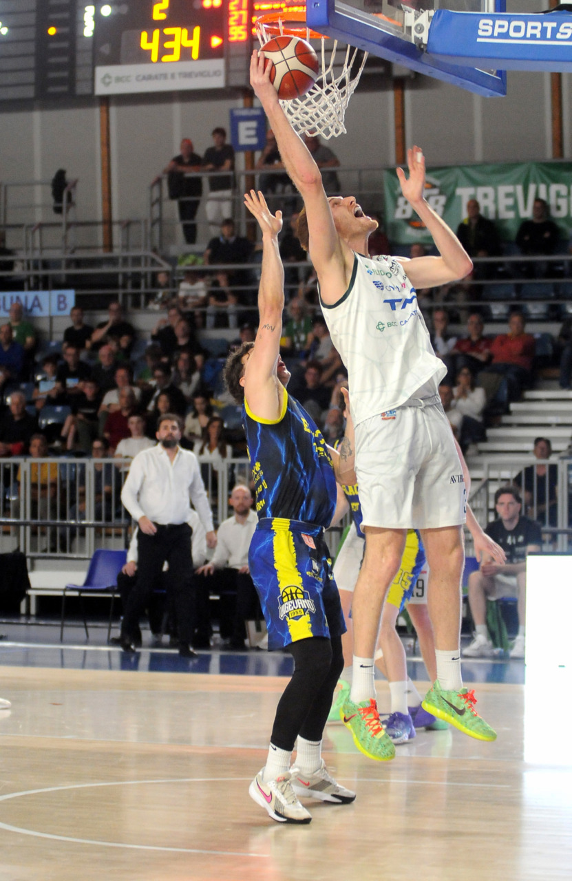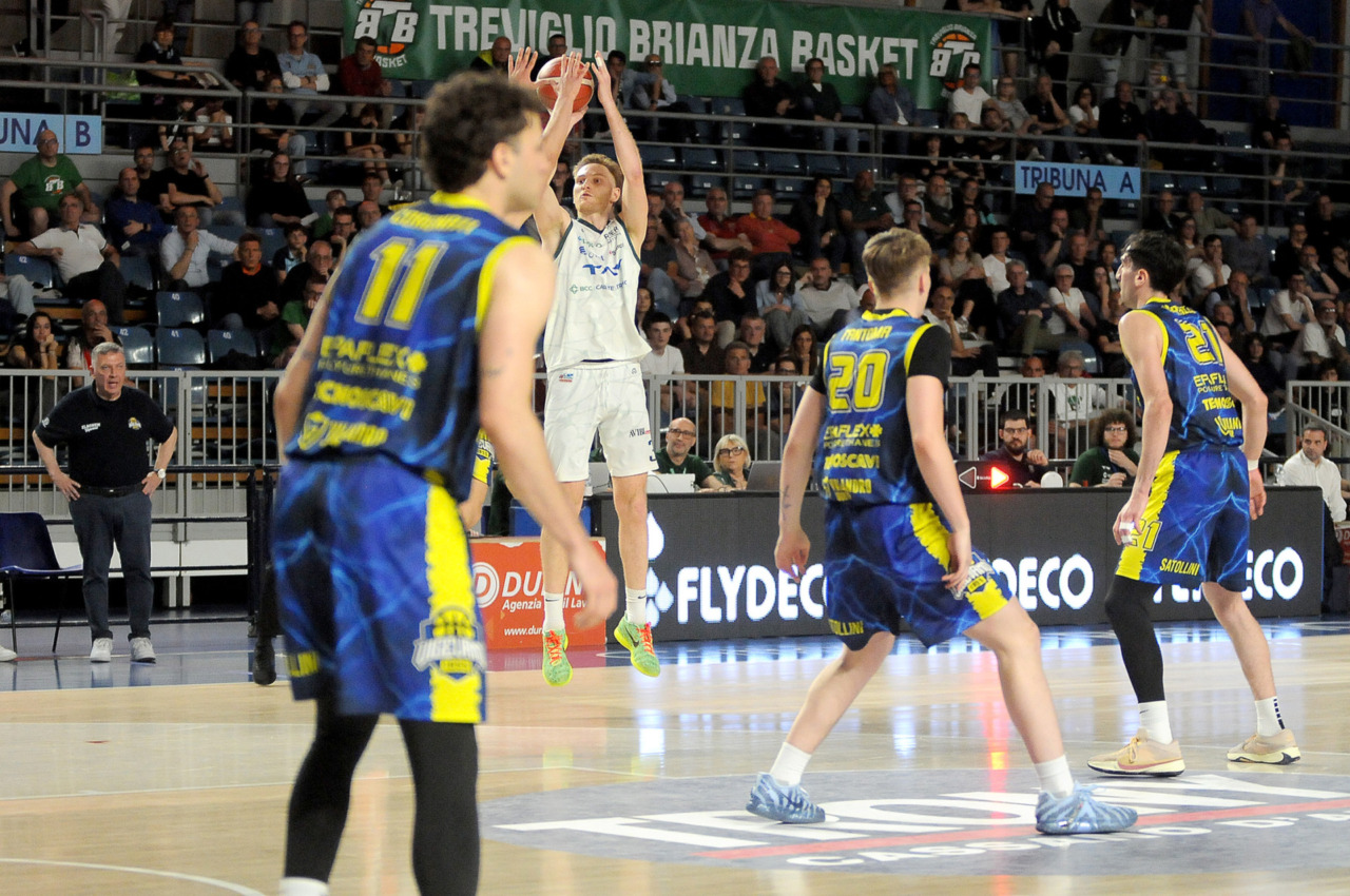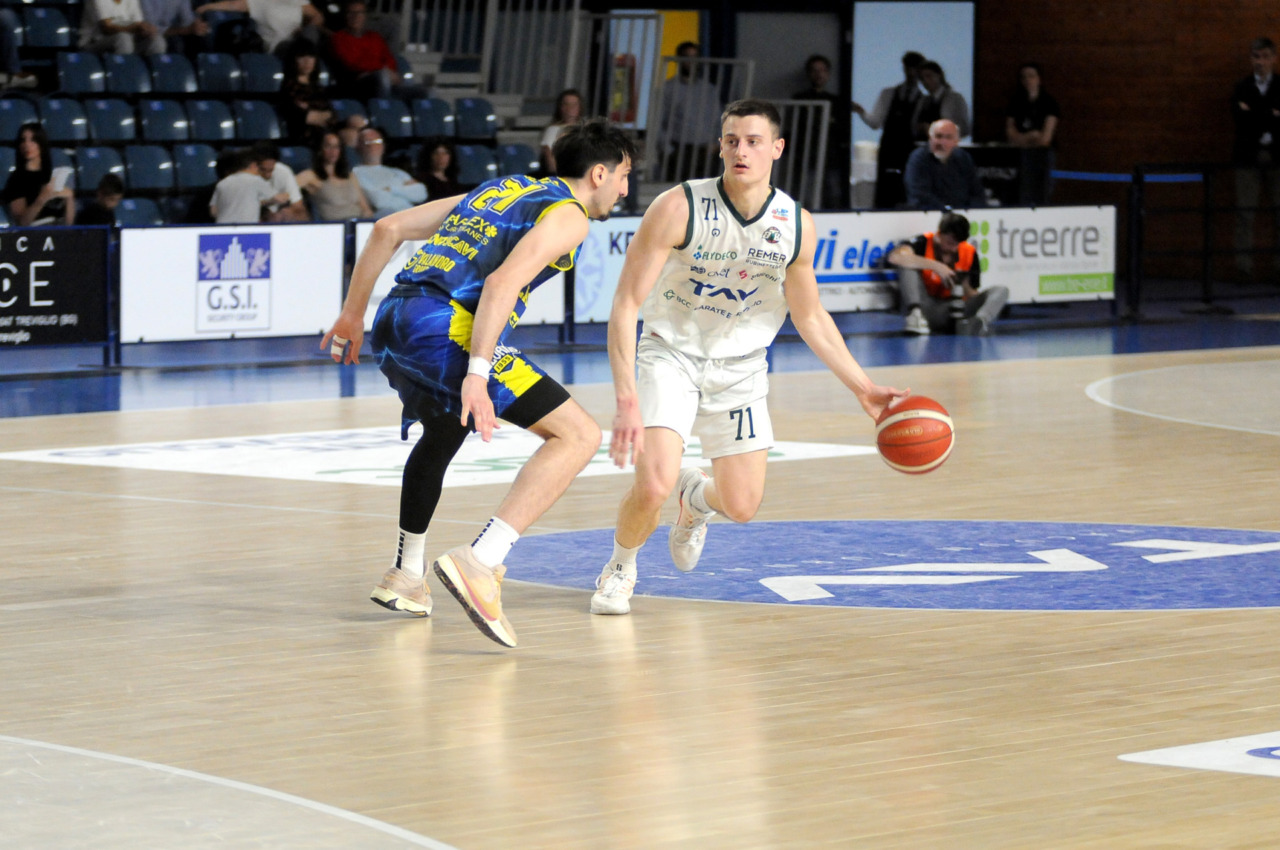 Era fondamentale vincere per una Tav Treviglio Brianza in piena emergenza infortuni – ai lungodegenti Tommaso Rossi e Matteo Galassi si sono aggiunti ieri, indisponibili il playmaker Michele Rubbini e l’ala albanese Celis Taflaj, a referto “per onore di firma” – e con lo stesso Marcius che si è fermato dopo il primo quarto di gioco. Con le rotazioni ridotte all’ossa coach Davide Villa e il suo staff tecnico ha puntato sulla difesa a zona per preservare dai falli i giocatori e provare a “sporcare” le trame offensive degli ospiti. Ducali che senza capitan Boglio e lo straniero, il lungo lituano Kancleris, sono rimasti in partita sino ai possessi finali quando i tiri liberi di Giacomo Zanetti e capitan Davide Reati (Mvp del match con 23 punti e 6 assist in oltre 37′ sul parquet) e i canestri di Theo Anchisi e Richard Morina, oltre all’ottima prova di Pietro Agostini (doppia doppia da 16 punti e 10 rimbalzi) hanno dato la spallata decisiva a Vigevano. L’approdo diretto ai playoff, al quinto posto attuale o al sesto, per la Tav ora passa dal risultato che maturerà domenica al PalaBorsani di Castellanza contro la Sae Scientifica Soevis Legnano (superata 85-79 all’andata): vincendo Treviglio sarebbe certa del quinto posto; in caso di sconfitta conterà lo scarto nel punteggio e il risultato della Paffoni Omegna sul parquet di Agrigento per completare i calcoli degli scontri diretti, in casa di arrivo a pari punti tra due squadre, o delle classifiche avulse in caso ci sia parità in classifica tra tre o quattro squadre. Nel migliore dei casi la Tav chiuderebbe quinti, nel peggiore sarebbe settima e dovrebbe giocare un turno di play-in (gara secca con il fattore campo a favore) per entrare nella griglia a otto squadre della post season.