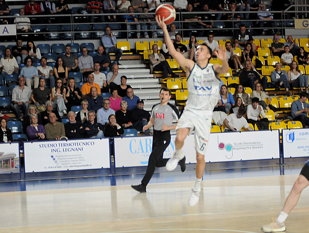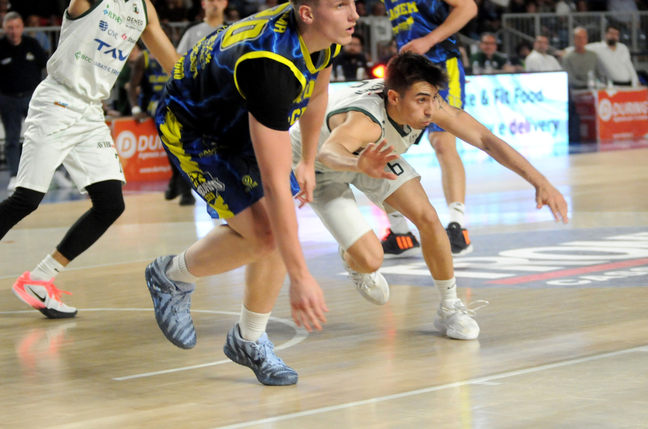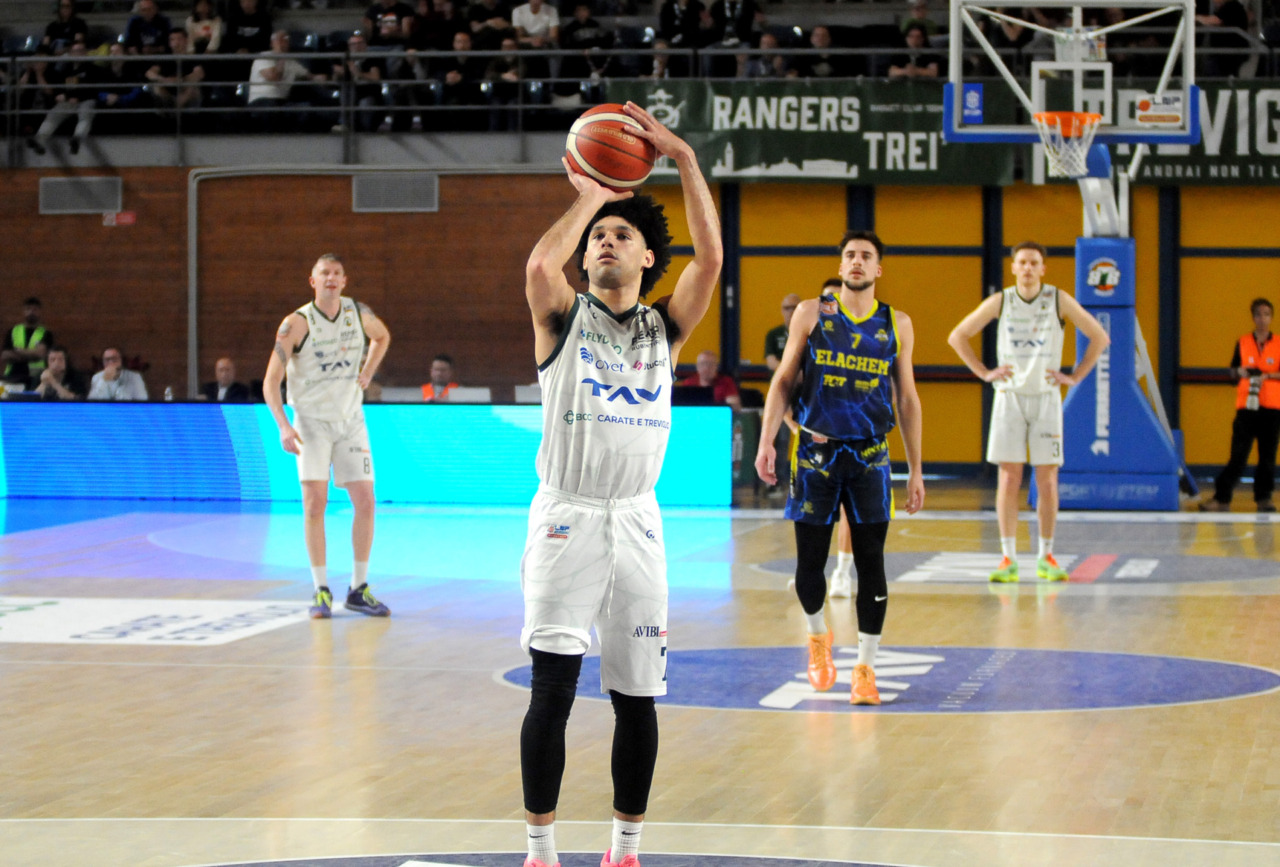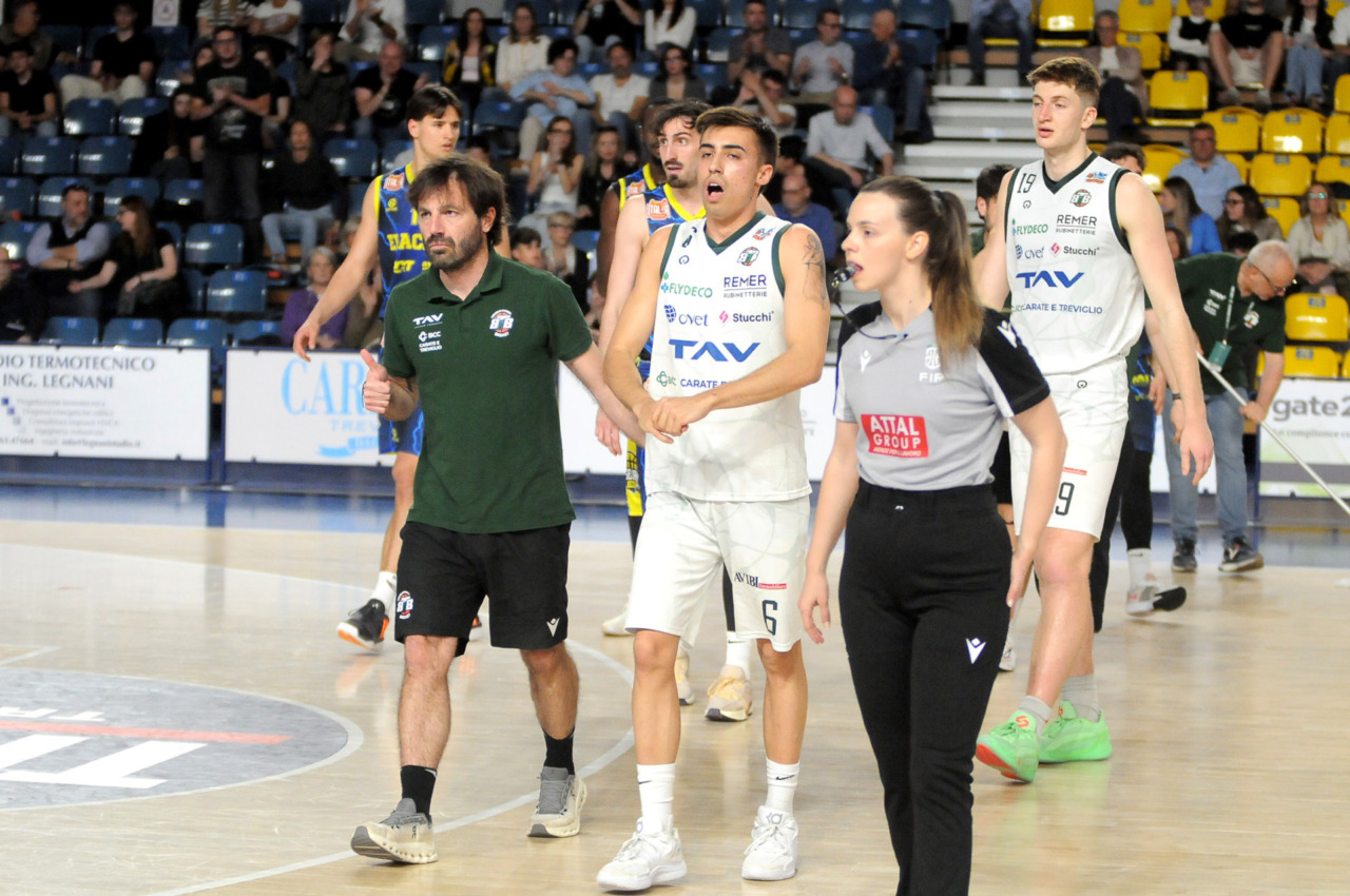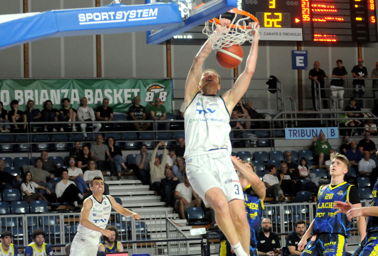 Era fondamentale vincere per una Tav Treviglio Brianza in piena emergenza infortuni – ai lungodegenti Tommaso Rossi e Matteo Galassi si sono aggiunti ieri, indisponibili il playmaker Michele Rubbini e l’ala albanese Celis Taflaj, a referto “per onore di firma” – e con lo stesso Marcius che si è fermato dopo il primo quarto di gioco. Con le rotazioni ridotte all’ossa coach Davide Villa e il suo staff tecnico ha puntato sulla difesa a zona per preservare dai falli i giocatori e provare a “sporcare” le trame offensive degli ospiti. Ducali che senza capitan Boglio e lo straniero, il lungo lituano Kancleris, sono rimasti in partita sino ai possessi finali quando i tiri liberi di Giacomo Zanetti e capitan Davide Reati (Mvp del match con 23 punti e 6 assist in oltre 37′ sul parquet) e i canestri di Theo Anchisi e Richard Morina, oltre all’ottima prova di Pietro Agostini (doppia doppia da 16 punti e 10 rimbalzi) hanno dato la spallata decisiva a Vigevano. L’approdo diretto ai playoff, al quinto posto attuale o al sesto, per la Tav ora passa dal risultato che maturerà domenica al PalaBorsani di Castellanza contro la Sae Scientifica Soevis Legnano (superata 85-79 all’andata): vincendo Treviglio sarebbe certa del quinto posto; in caso di sconfitta conterà lo scarto nel punteggio e il risultato della Paffoni Omegna sul parquet di Agrigento per completare i calcoli degli scontri diretti, in casa di arrivo a pari punti tra due squadre, o delle classifiche avulse in caso ci sia parità in classifica tra tre o quattro squadre. Nel migliore dei casi la Tav chiuderebbe quinti, nel peggiore sarebbe settima e dovrebbe giocare un turno di play-in (gara secca con il fattore campo a favore) per entrare nella griglia a otto squadre della post season.