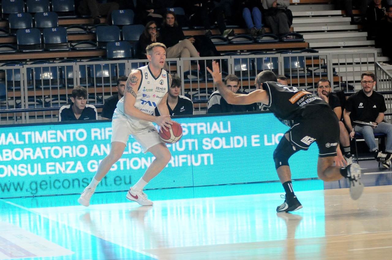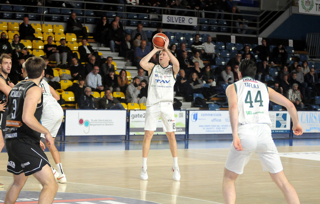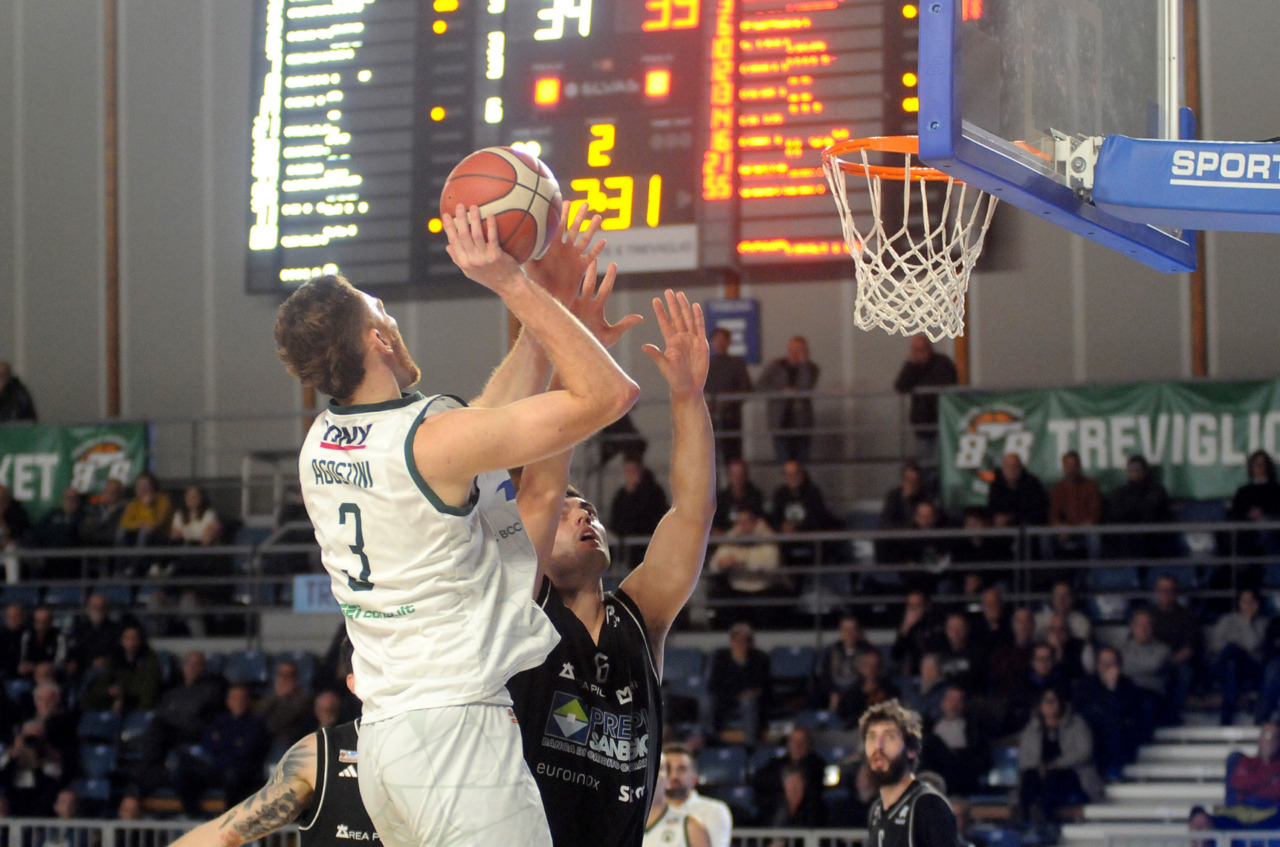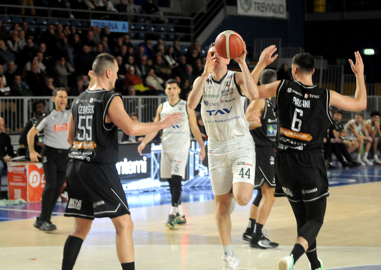 Il ko casalingo 87-76 contro la Rucker San Vendemiano è costato la quarta sconfitta consecutiva per la Tav Treviglio Brianza nel campionato di Serie B Nazionale. Il cambio di assetto tattico, dopo la rinuncia al pivot Simon Anaekwe e l’assenza pesante del pivot croato Aleksandar Marcius hanno creato qualche problema alla squadra sul piano della lotta ai rimbalzi, favorevole agli ospiti 47-30. Tra le note positive della serata il buon esordio di Matteo Galassi, alla “prima” in biancoverde, e il rientro in campo – mancava dalla semifinale playoff della scorsa stagione – di capitan Davide Reati. Alla Tav, ora, serve voltare pagina e mettere nel mirino la trasferta di domenica a Fidenza per interrompere la striscia di risultati negativi.