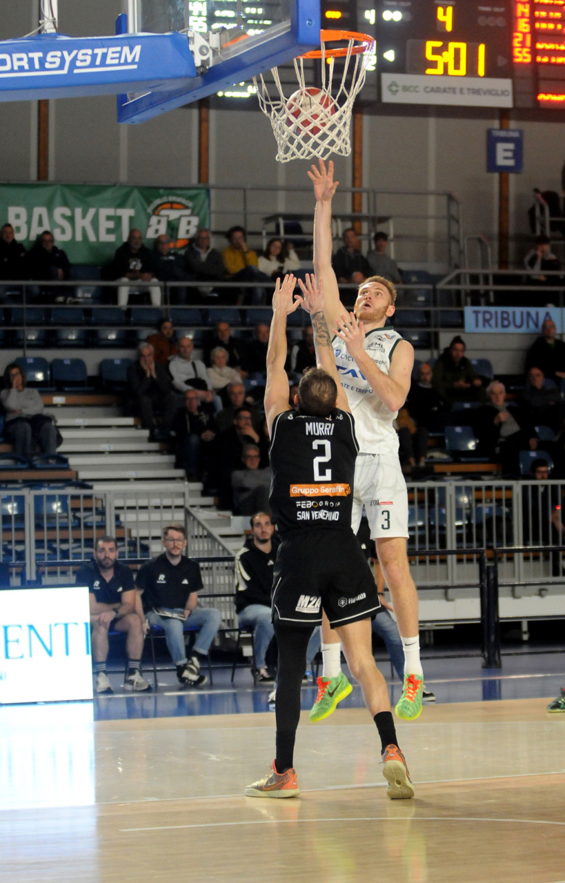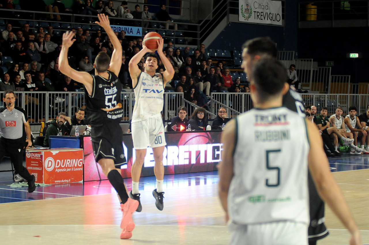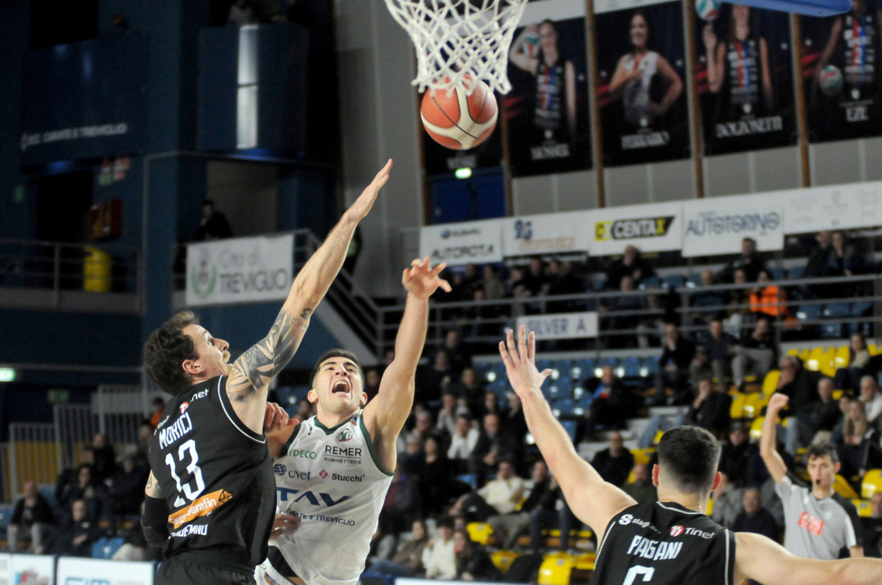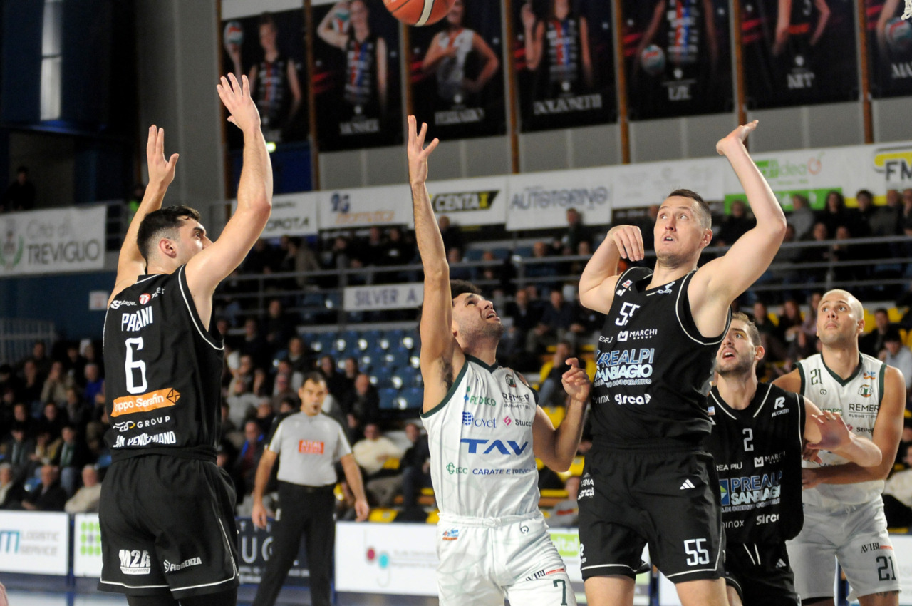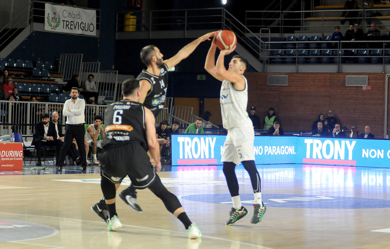Il ko casalingo 87-76 contro la Rucker San Vendemiano è costato la quarta sconfitta consecutiva per la Tav Treviglio Brianza nel campionato di Serie B Nazionale. Il cambio di assetto tattico, dopo la rinuncia al pivot Simon Anaekwe e l’assenza pesante del pivot croato Aleksandar Marcius hanno creato qualche problema alla squadra sul piano della lotta ai rimbalzi, favorevole agli ospiti 47-30. Tra le note positive della serata il buon esordio di Matteo Galassi, alla “prima” in biancoverde, e il rientro in campo – mancava dalla semifinale playoff della scorsa stagione – di capitan Davide Reati. Alla Tav, ora, serve voltare pagina e mettere nel mirino la trasferta di domenica a Fidenza per interrompere la striscia di risultati negativi.