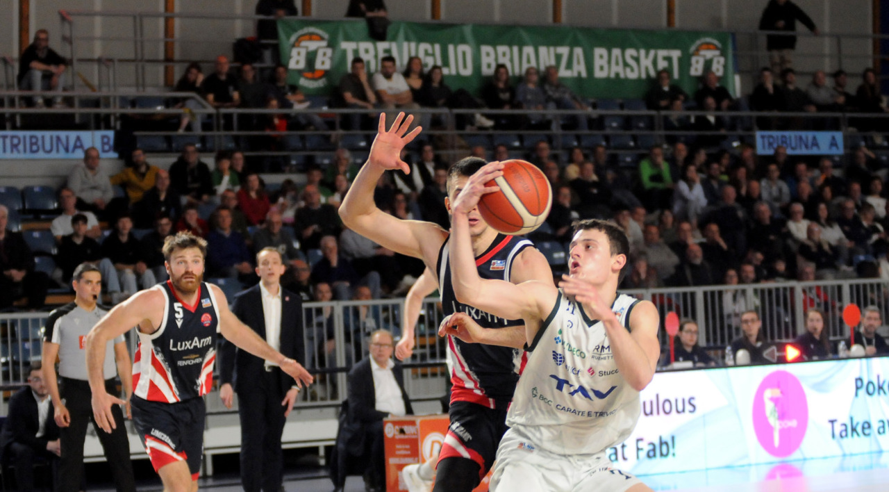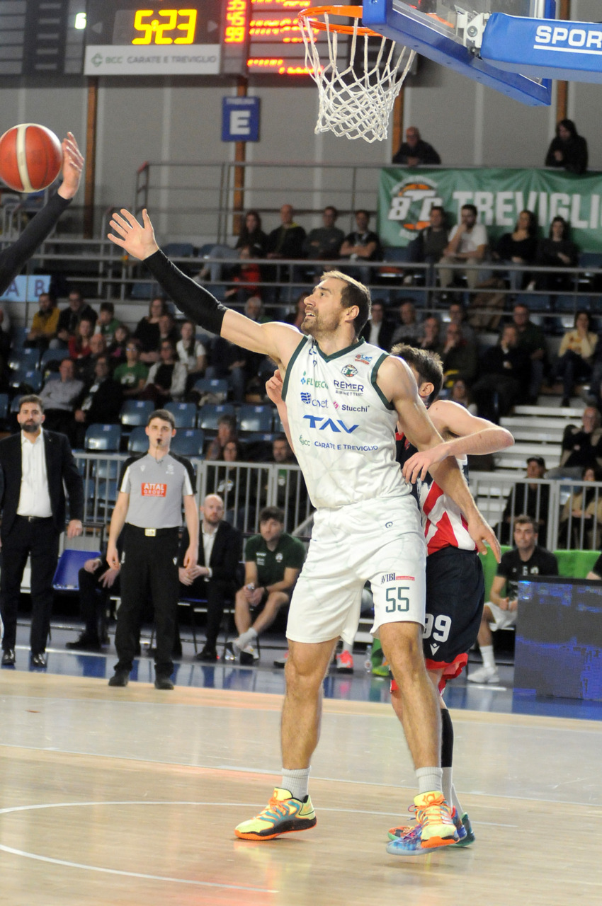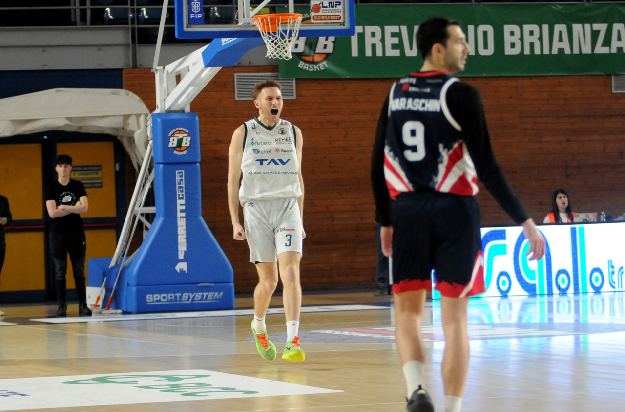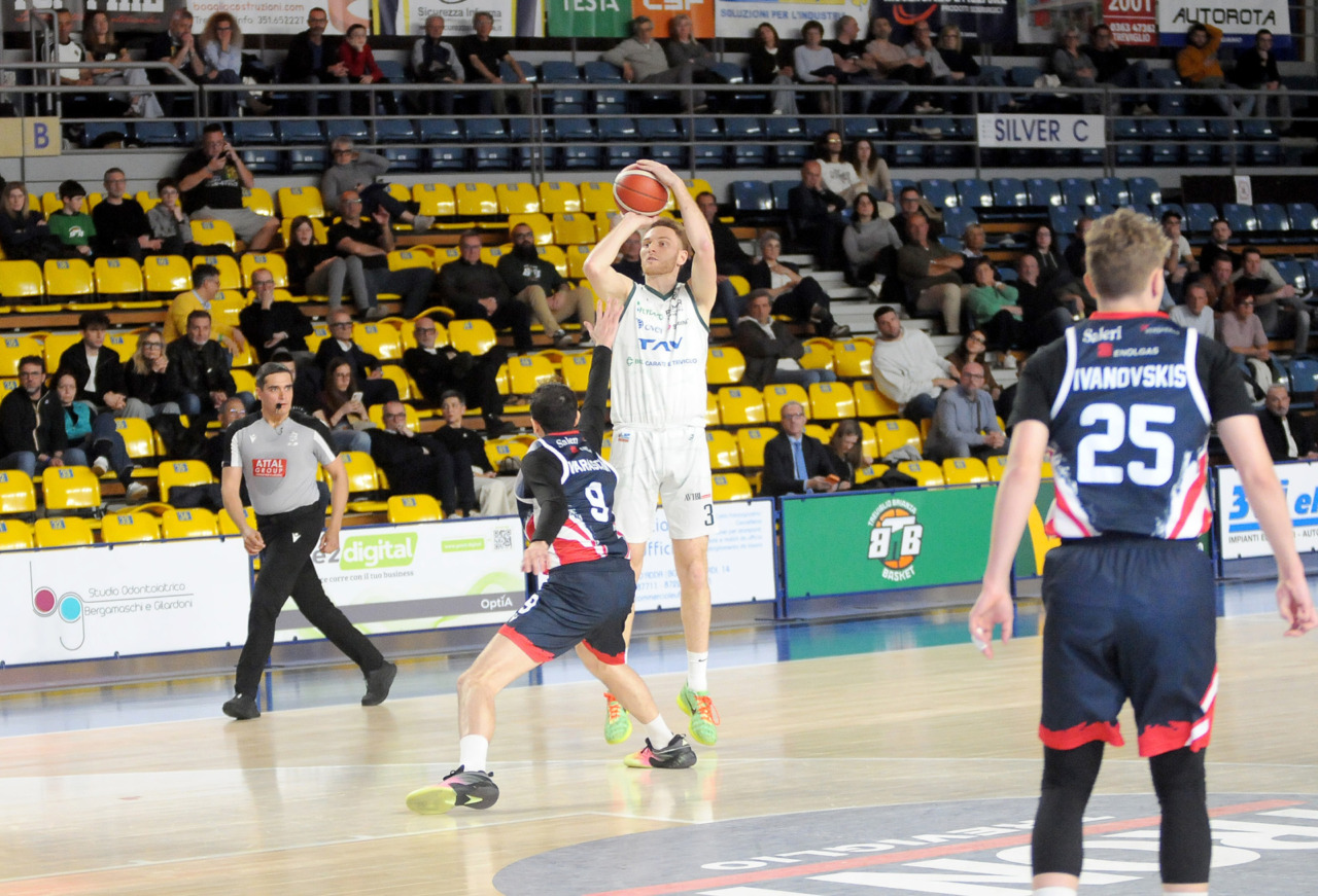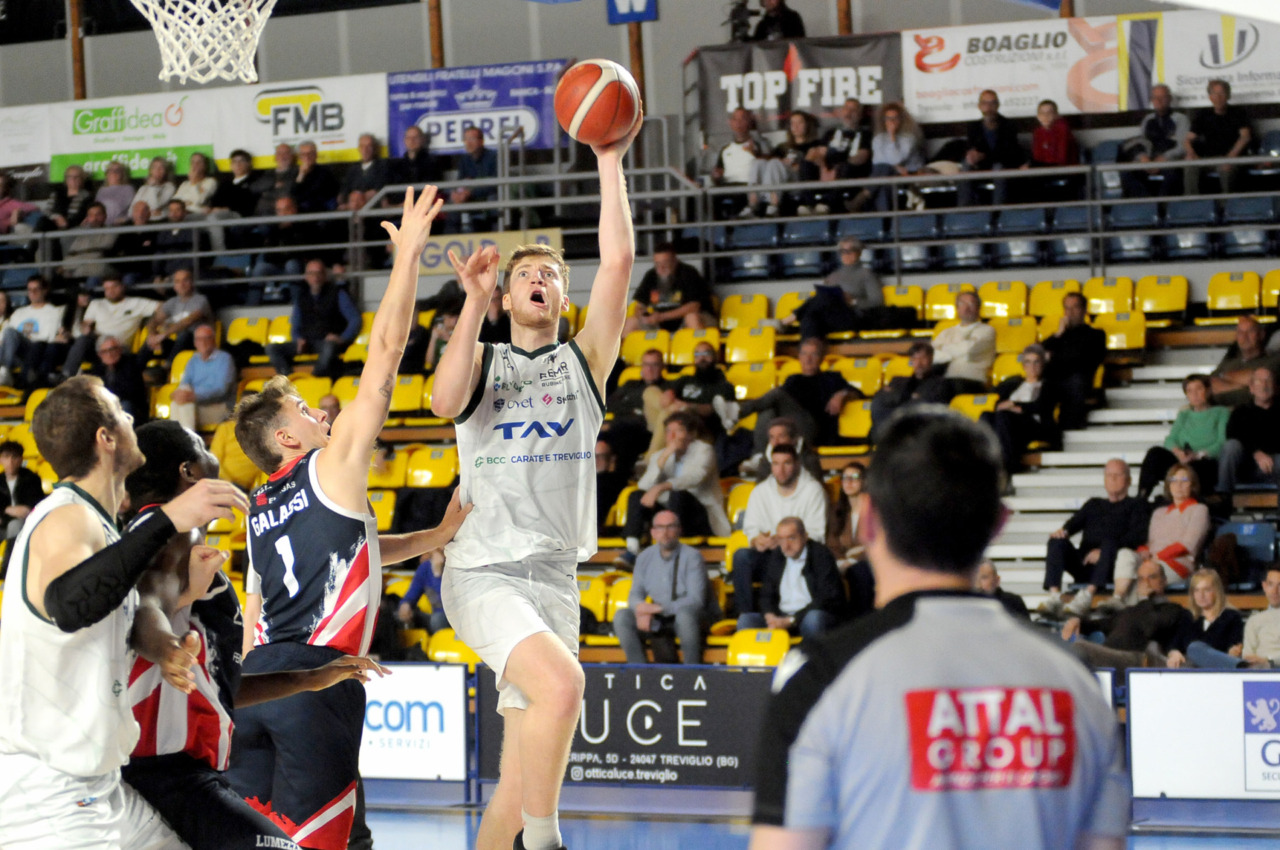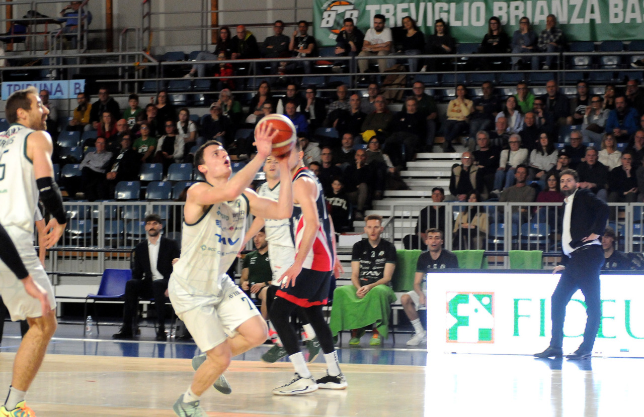 La vittoria 82-75 della Tav Treviglio Brianza sulla LuxArm Lumezzane, sabato sera nel turno pasquale del campionato di Serie B Nazionale, ha permesso alla squadra di coach Davide Villa di riscattare il ko della settimana precedente sul parquet della Fabo Herons Montecatini e ha rilanciato la corsa playoff. I biancoverdi, infatti, in graduatoria nel girone A sono saliti al quinto posto a quota 38 punti, appaiati proprio ai termali che hanno la differenza canestri a favore nello scontro diretto (+8), ma rispetto a capitan Davide Reati e compagni hanno ancora il turno di riposo da rispettare nelle quattro giornate che ancora mancano a chiudere la stagione regolare. In vetta, nel girone A, Vigevano (52 punti) è prossima a blindare la prima posizione, domenica 12 aprile lo scontro diretto tra la Gema Montecatini e Orzinuovi (46 punti) dirà chi sarà la diretta inseguitrice, mentre San Vendemiano (44 punti), quarta, ha già disputato in anticipo il match contro Omegna perso in casa il 13 marzo 90-79. Herons Montecatini, impegnato in trasferta a Fidenza, e Treviglio che riceve al PalaFacchetti domenica l’Assigeco Piacenza in un altro scontro diretto proveranno ad accorciare a 4 lunghezze il distacco dalla formazione veneta.