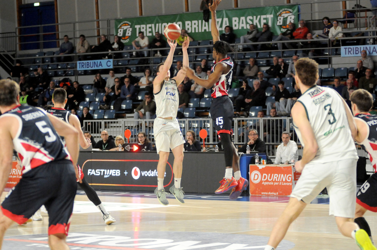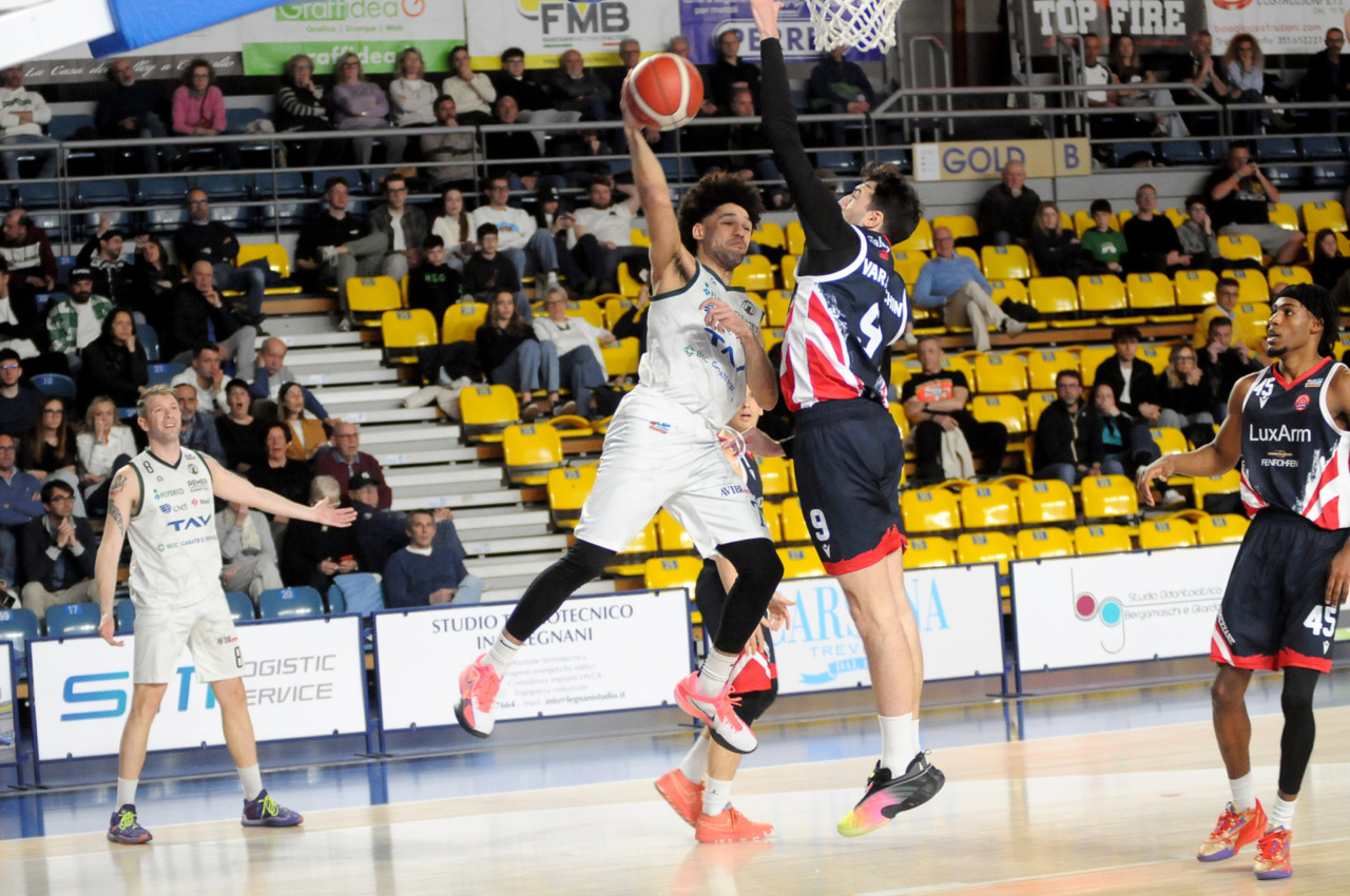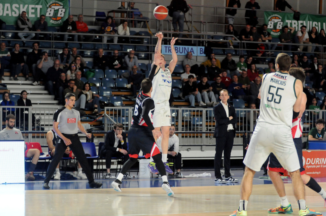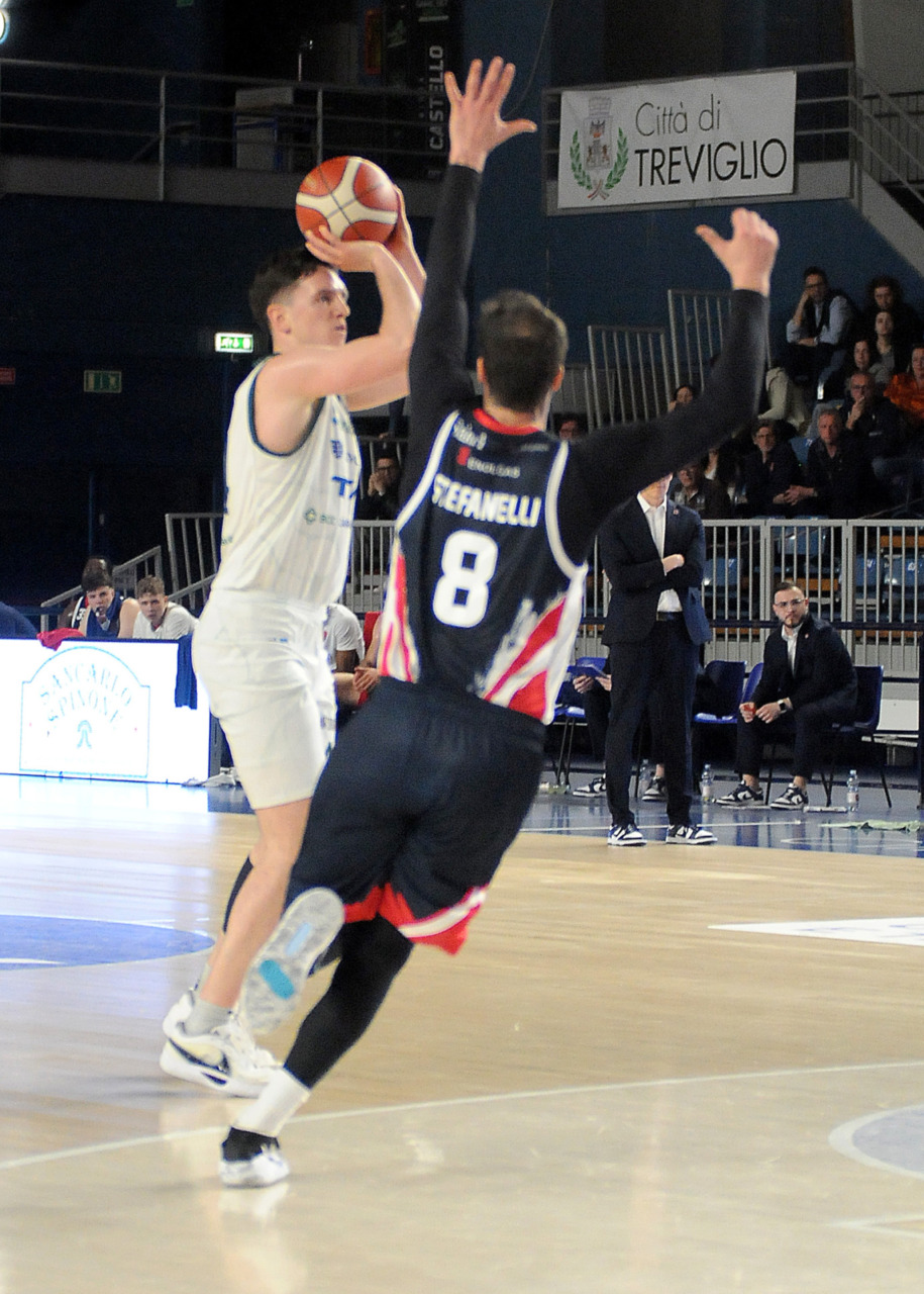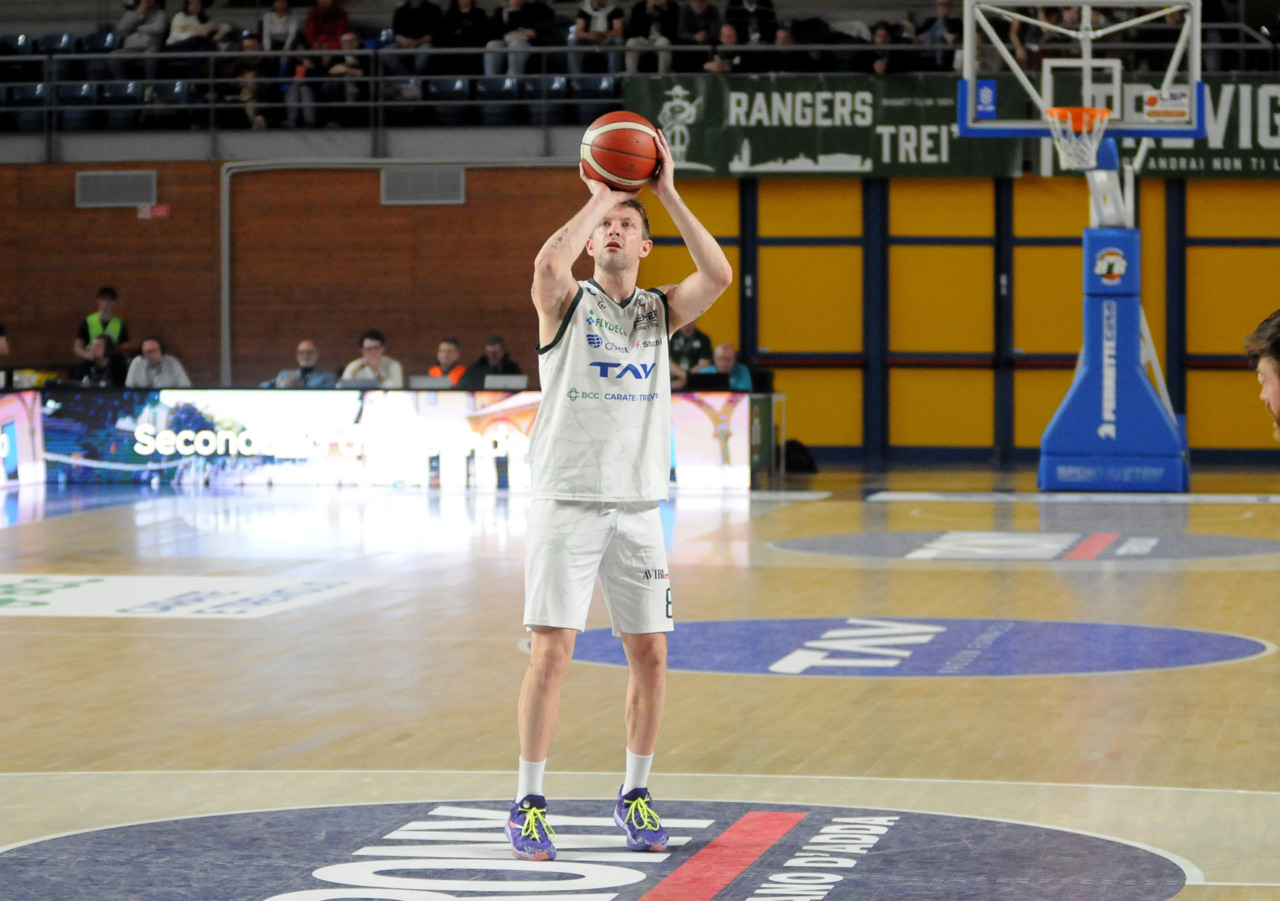 La vittoria 82-75 della Tav Treviglio Brianza sulla LuxArm Lumezzane, sabato sera nel turno pasquale del campionato di Serie B Nazionale, ha permesso alla squadra di coach Davide Villa di riscattare il ko della settimana precedente sul parquet della Fabo Herons Montecatini e ha rilanciato la corsa playoff. I biancoverdi, infatti, in graduatoria nel girone A sono saliti al quinto posto a quota 38 punti, appaiati proprio ai termali che hanno la differenza canestri a favore nello scontro diretto (+8), ma rispetto a capitan Davide Reati e compagni hanno ancora il turno di riposo da rispettare nelle quattro giornate che ancora mancano a chiudere la stagione regolare. In vetta, nel girone A, Vigevano (52 punti) è prossima a blindare la prima posizione, domenica 12 aprile lo scontro diretto tra la Gema Montecatini e Orzinuovi (46 punti) dirà chi sarà la diretta inseguitrice, mentre San Vendemiano (44 punti), quarta, ha già disputato in anticipo il match contro Omegna perso in casa il 13 marzo 90-79. Herons Montecatini, impegnato in trasferta a Fidenza, e Treviglio che riceve al PalaFacchetti domenica l’Assigeco Piacenza in un altro scontro diretto proveranno ad accorciare a 4 lunghezze il distacco dalla formazione veneta.