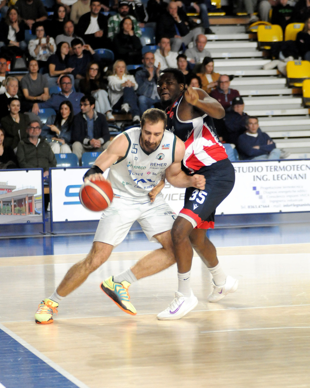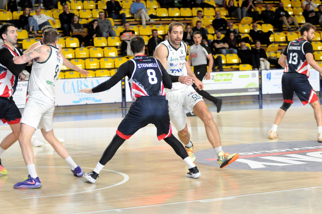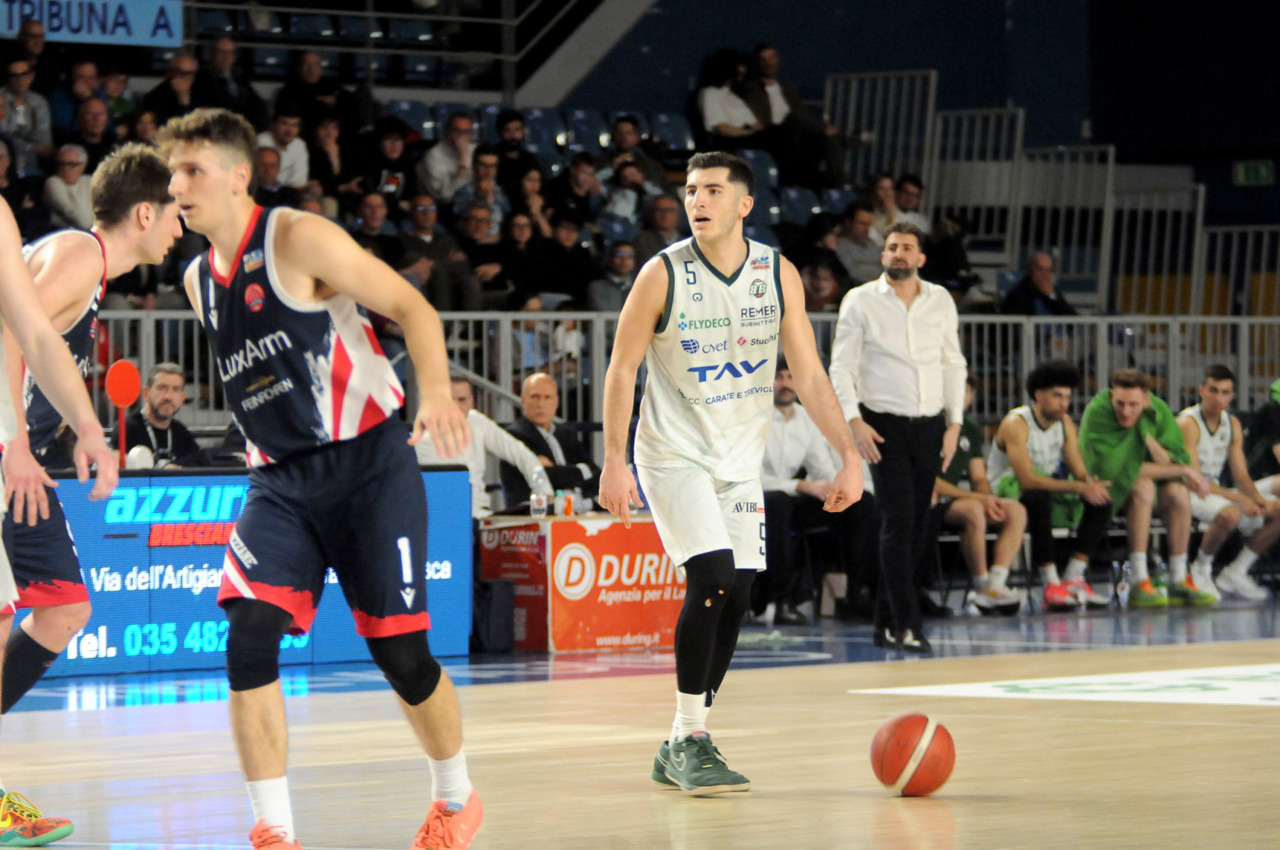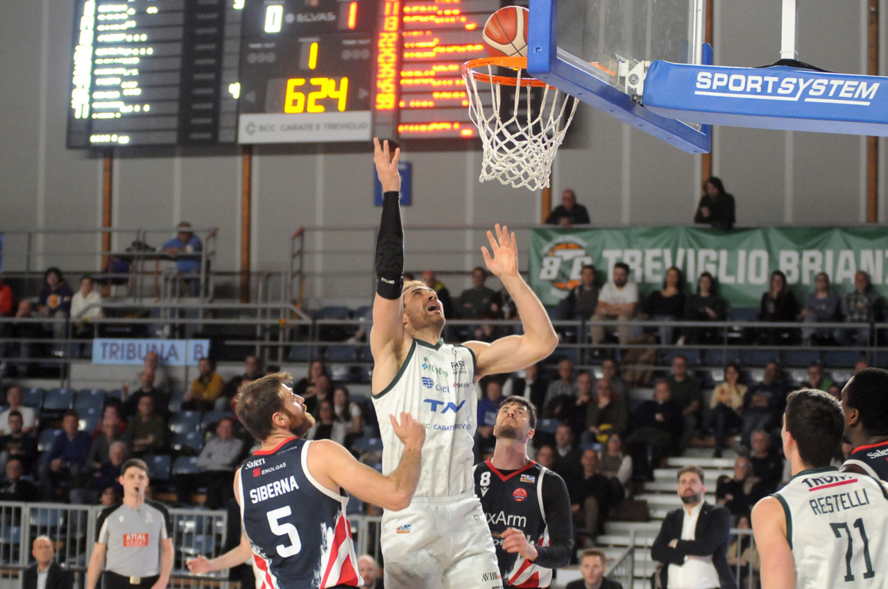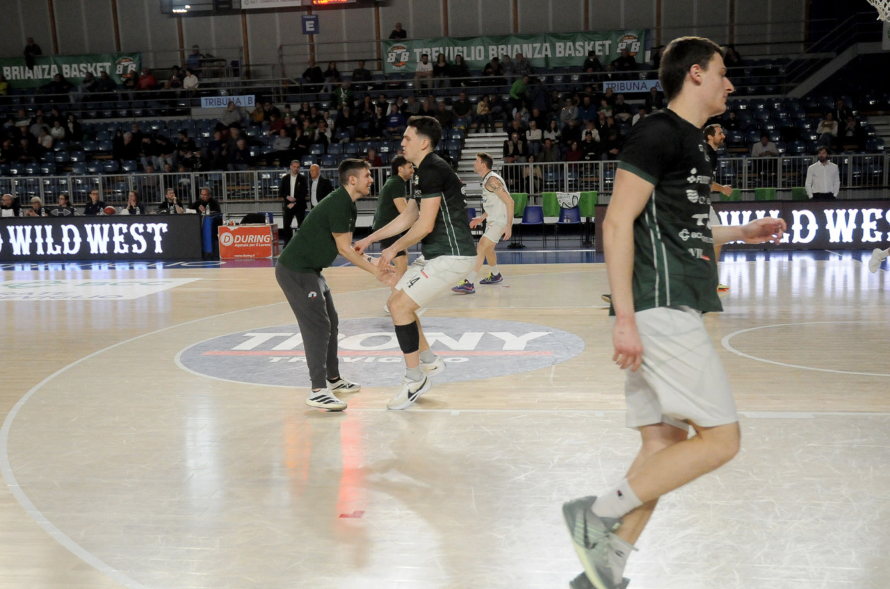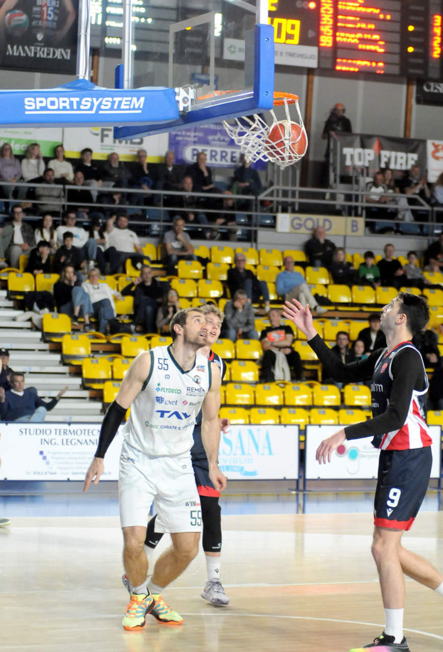La vittoria 82-75 della Tav Treviglio Brianza sulla LuxArm Lumezzane, sabato sera nel turno pasquale del campionato di Serie B Nazionale, ha permesso alla squadra di coach Davide Villa di riscattare il ko della settimana precedente sul parquet della Fabo Herons Montecatini e ha rilanciato la corsa playoff. I biancoverdi, infatti, in graduatoria nel girone A sono saliti al quinto posto a quota 38 punti, appaiati proprio ai termali che hanno la differenza canestri a favore nello scontro diretto (+8), ma rispetto a capitan Davide Reati e compagni hanno ancora il turno di riposo da rispettare nelle quattro giornate che ancora mancano a chiudere la stagione regolare. In vetta, nel girone A, Vigevano (52 punti) è prossima a blindare la prima posizione, domenica 12 aprile lo scontro diretto tra la Gema Montecatini e Orzinuovi (46 punti) dirà chi sarà la diretta inseguitrice, mentre San Vendemiano (44 punti), quarta, ha già disputato in anticipo il match contro Omegna perso in casa il 13 marzo 90-79. Herons Montecatini, impegnato in trasferta a Fidenza, e Treviglio che riceve al PalaFacchetti domenica l’Assigeco Piacenza in un altro scontro diretto proveranno ad accorciare a 4 lunghezze il distacco dalla formazione veneta.