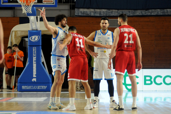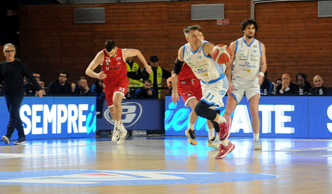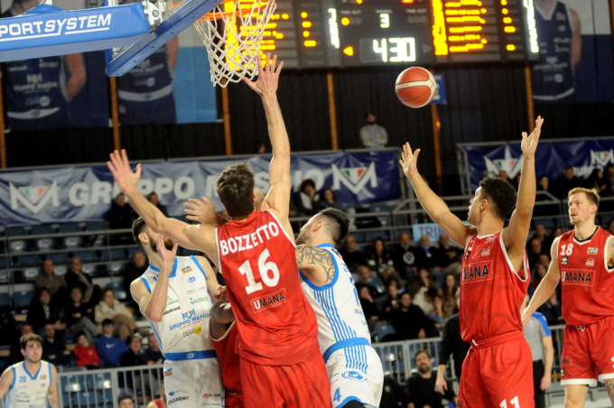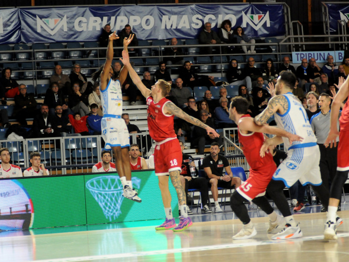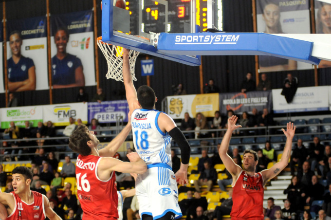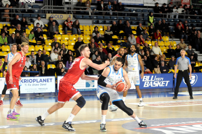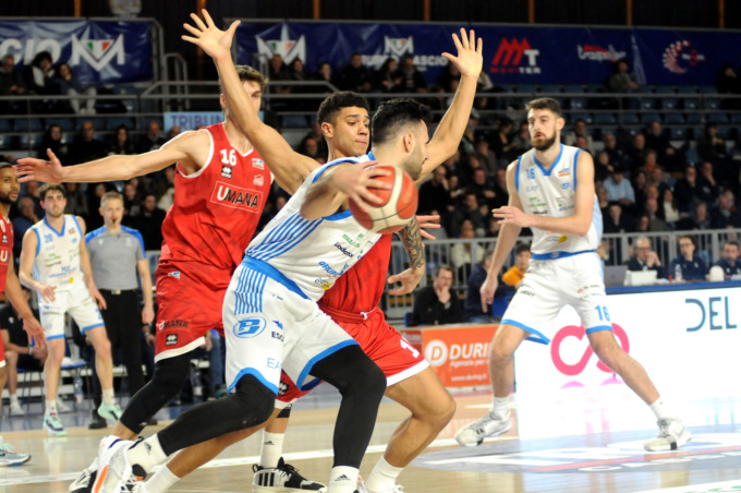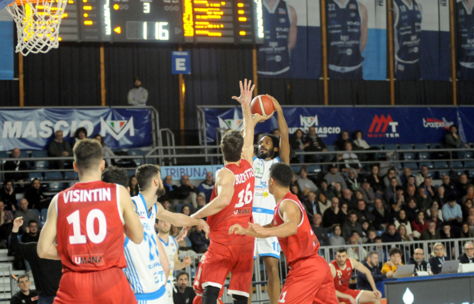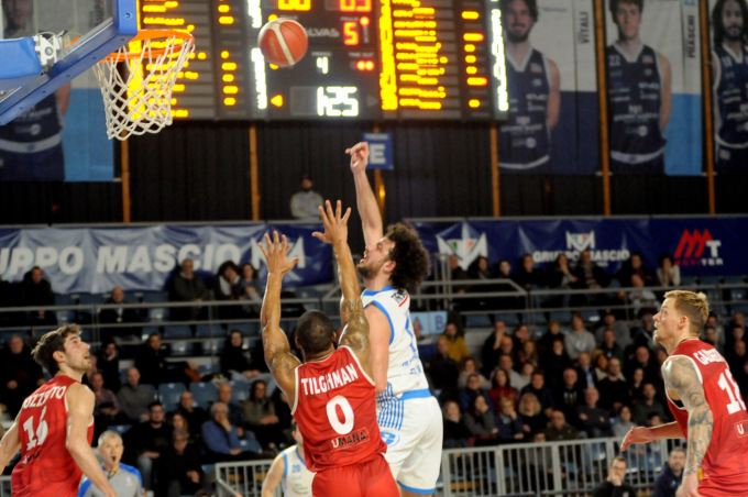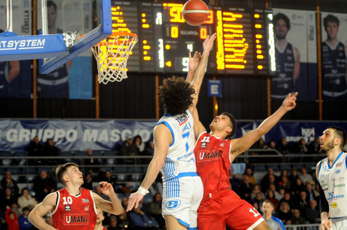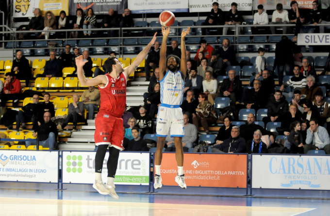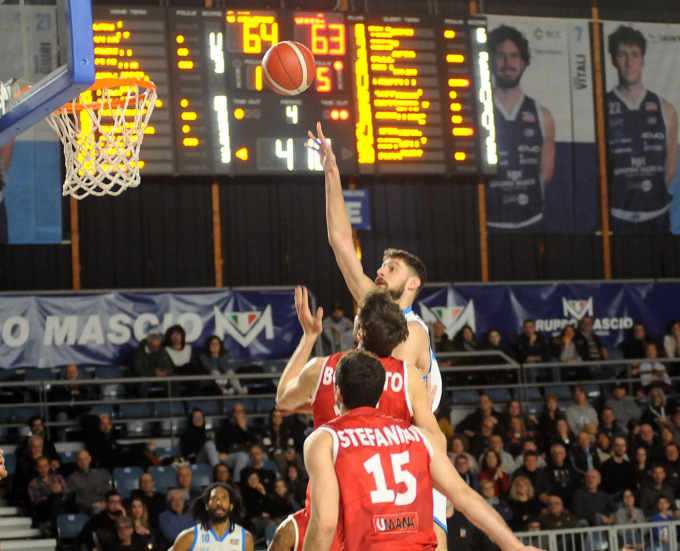 Una fase ad orologio sin qui – il Gruppo Mascio ha disputato tre delle quattro giornata in calendario – amara per Treviglio sconfitta ieri di un punto al PalaFacchetti per mano dell’Umana Chiusi, a caccia di punti per evitare la retrocessione diretta in serie B. Il terzo ko in altrettante partite per i biancoblu è maturato nel finale di gara, come a Verona e in casa contro Cividale, con il tiro libero del sorpasso realizzato dall’americano Tilghman per i toscani che ha poi fallito il secondo catturando anche il rimbalzi a 2″4 decimi dalla sirena senza lasciare alla formazione di coach Giorgio Valli la possibilità di tentare l’ultima azione. La situazione in classifica per il Gruppo Mascio non è cambiata: la settimana piazza attuale apre le porte ai playoff, ma restano sette gare da disputare e i biancoblu dovranno guardarsi alle spalle dalla Elachem Vigevano 1955, staccata di due punti (con una gara in più), e dalla Luiss Roma che ha 4 lunghezze di ritardo. In conferenza stampa, nel post gara sia coach Valli che il playmaker Luca Vitali hanno sottolineato l’importanza per giocatori e staff che tutto l’ambiente si compatti e sostenga la squadra sino alla fine così da sfatare quello che sta diventando un tabù… La vittoria.