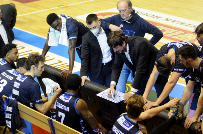 Coach Michele Carrea sprona la sua squadra: "Dobbiamo ripartire con la volontà di fare questo passo avanti". Il collega Boniciolli elogia Treviglio.