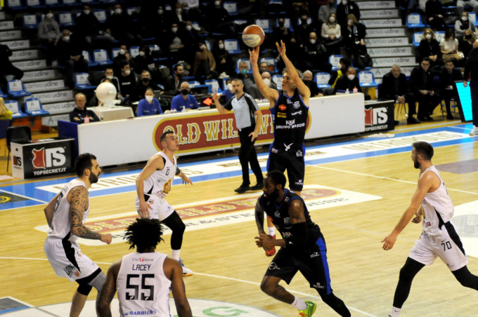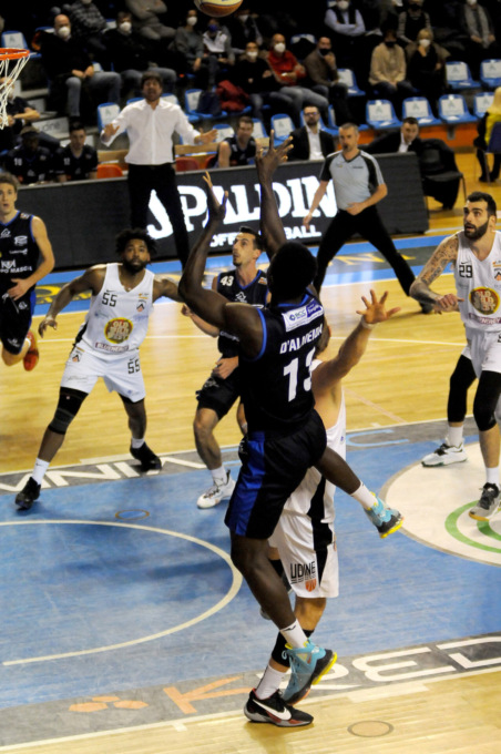 Per vincere in casa di una “corazzata” come Udine sarebbe servita la miglior Gruppo Mascio Treviglio. Ma senza tre giocatori – capitan Davide Reati e Ion Lupusor infortunati e l’ex azzurro Brian Sacchetti in quarantena per il Covid – l’impresa era davvero impossibile. Rotazioni ridotte per i biancoblu al cospetto di una squadra che, lasciatasi alle spalle i problemi legati alla pandemia, recuperava il capitano Michele Antonutti dopo tre mesi lontano dal parquet e il centro americano Brandon Walters, anche se non al meglio. Ai bianconeri di coach Matteo Boniciolli, però, le risorse non mancavano tra titolari e panchina e il match è stato a senso unico a favore dei padroni di casa, nonostante Treviglio abbia provato a resistere alla fisicità e al talento avversario. La serata storta al tiro di alcuni giocatori biancoblu e la difficoltà a reggere il confronto a rimbalzo, senza due giocatori del calibro di Sacchetti e Lupusor, hanno fatto tutta la differenza nei 40 minuti e i friulani, miglior difesa del girone Verde di A2, hanno vinto con merito la sfida da alta classifica. Ora Treviglio ha da mettere nel mirino la gara di domenica al PalaFacchetti contro l’Urania Milano, sperando che dall’infermeria arrivino (finalmente) notizie positive.