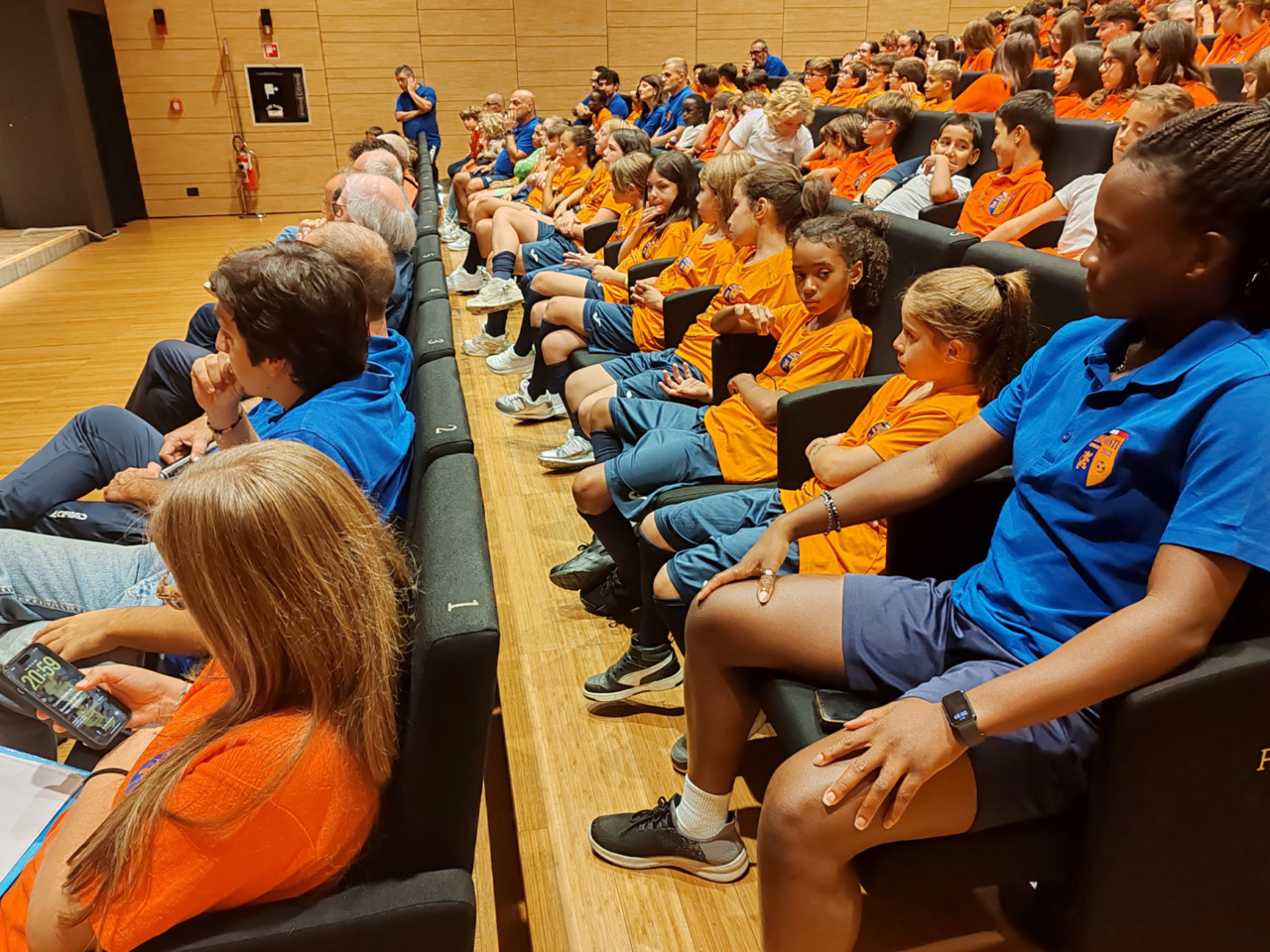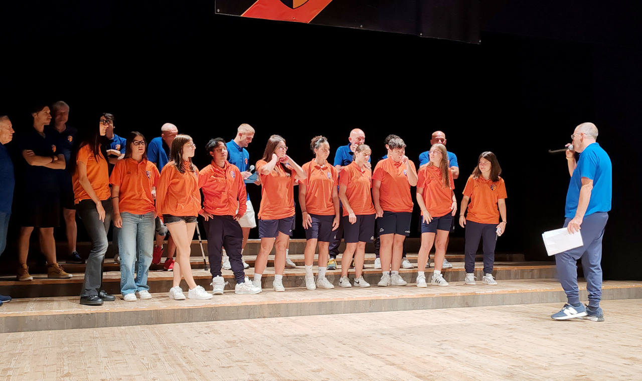 La sfilata delle squadre della Zanconti che affronteranno la stagione calcistica 2025/2026 è stata introdotta dal direttore sportivo (e mister delle Allieve) Cristiano Santiani che ha voluto puntualizzare (non senza una nota polemica verso alcune malelingue) come “la Zanconti è una società sana e che prosegue la sua attività con slancio, impegno e serietà – ha detto dal palco -. Non siamo la “squadra dell’oratorio” come qualcuno, con accezione negativa ci indica, ma siamo una società che fa attività in oratorio secondo lo spirito dell’oratorio. Vogliamo far crescere le nostre ragazze e i nostri ragazzi, prima dal punto di vista umano e successivamente sportivo”. E gli applausi sono fioccati dalla platea per la sfilata delle formazioni, accompagnate da allenatori, viceallenatori e dirigenti accompagnatori della Zanconti 2022. Poi, per concludere, la foto di tutto lo staff, dirigenti e allenatori, che accompagnerà giocatrici e giocatori arancioblu in questa nuovo, e speriamo appagante, annata sportiva. Auguri Zanconti!!