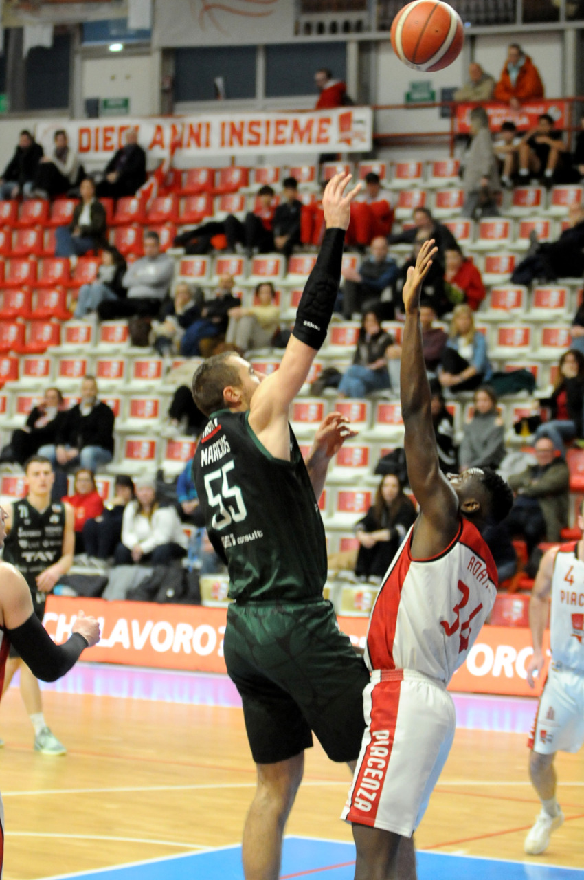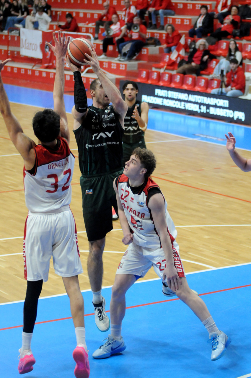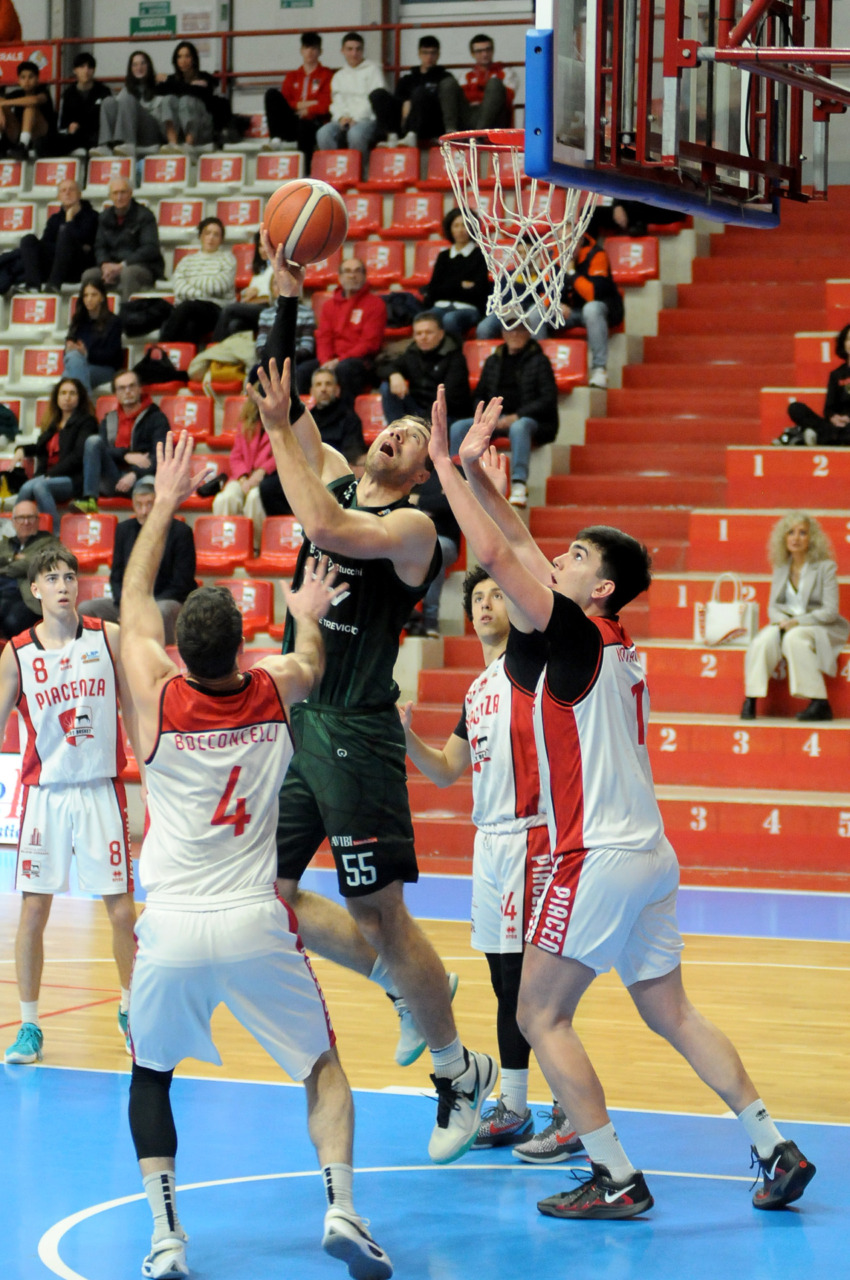 Una partita da vincere a tutti i costi contro una Bakery Piacenza che, a dispetto dell’ultimo posto in classifica nel girone A, si è dimostrata squadra viva e con la voglia di lottare ancora per evitare la retrocessione diretta. La Tav Treviglio Brianza è arrivava al match con le scorie di tre sconfitte consecutive e dopo aver saltato due turni, uno rimandato a lunedì 16 marzo in casa contro la Foppiani Fulgor Fidenza e uno perché era a riposo. Sul campo la squadra biancoverde ha approcciato nella maniera giusta la sfida, conducendola per larghi tratti nel primo tempo. Nella ripresa l’orgoglio dei padroni di casa ha prodotto un recupero e l’aggancio sul 68, poi la Tav ha rimesso le cose a posto in attacco grazie ai suoi senior, capitan Davide Reati, Michele Rubbini e Aleksandar Marcius, e ad un ottimo Marco Restelli. Al termine della gallery fotografica la situazione nel girone A di B Nazionale.