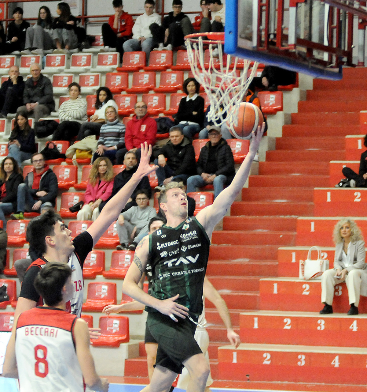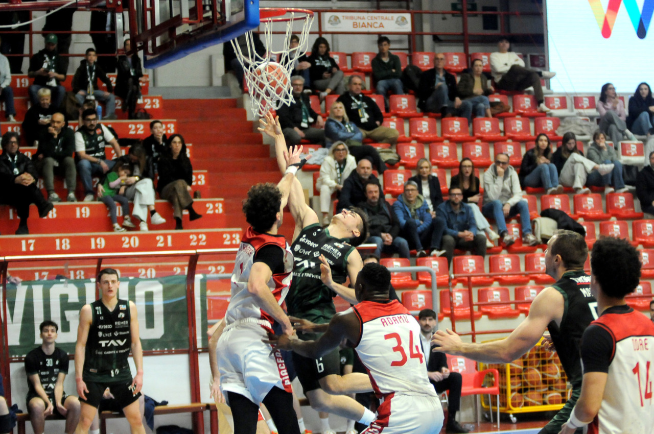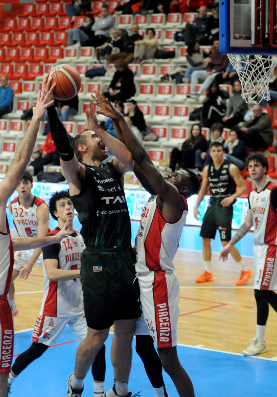 Una partita da vincere a tutti i costi contro una Bakery Piacenza che, a dispetto dell’ultimo posto in classifica nel girone A, si è dimostrata squadra viva e con la voglia di lottare ancora per evitare la retrocessione diretta. La Tav Treviglio Brianza è arrivava al match con le scorie di tre sconfitte consecutive e dopo aver saltato due turni, uno rimandato a lunedì 16 marzo in casa contro la Foppiani Fulgor Fidenza e uno perché era a riposo. Sul campo la squadra biancoverde ha approcciato nella maniera giusta la sfida, conducendola per larghi tratti nel primo tempo. Nella ripresa l’orgoglio dei padroni di casa ha prodotto un recupero e l’aggancio sul 68, poi la Tav ha rimesso le cose a posto in attacco grazie ai suoi senior, capitan Davide Reati, Michele Rubbini e Aleksandar Marcius, e ad un ottimo Marco Restelli. Al termine della gallery fotografica la situazione nel girone A di B Nazionale.