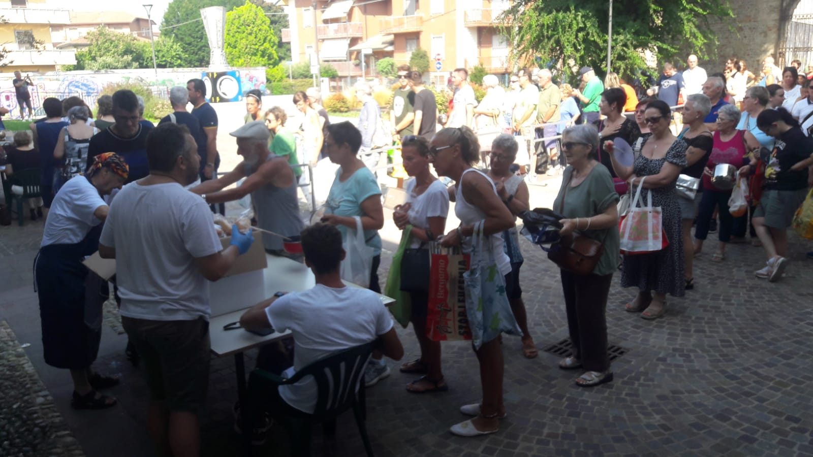 Il rito della distribuzione a cittadini e viandanti di una razione di minestra di ceci e due pani a testa con razione doppia per i “Cattaneo” e tripla per i “De Capitani”, viene riproposta ogni anno a San Lorenzo nel pieno rispetto delle volontà del nobile Giovan Battista Cattaneo de Capitani d’Arzago che nel 1677 donò all’ente che gestiva l’ospedale mille pertiche di terra, la cascina Stantirone e la grande corte (poi detta dell’Ospedale). Il dono era condizionato all’obbligo di distribuire, ogni anno nel giorno di San Lorenzo, una razione di due pani e una scodella di minestra di ceci alle famiglie arzaghesi. Venuto meno, nel 1980, l’ente morale che gestiva l’ospedale, ad occuparsi della distribuzione è sempre stata l’Amministrazione comunale di Arzago, che ha così tenuto vivo il rito tanto caro agli arzaghesi e non solo. In guanti e grembiule, anche quest’anno, c’è con molti altri volontari il sindaco Ugo Rivabene e il predecessore Gabriele Riva. Ospite d’eccezione a collaborare per la distribuzione il sindaco di Casirate Mario Donadoni